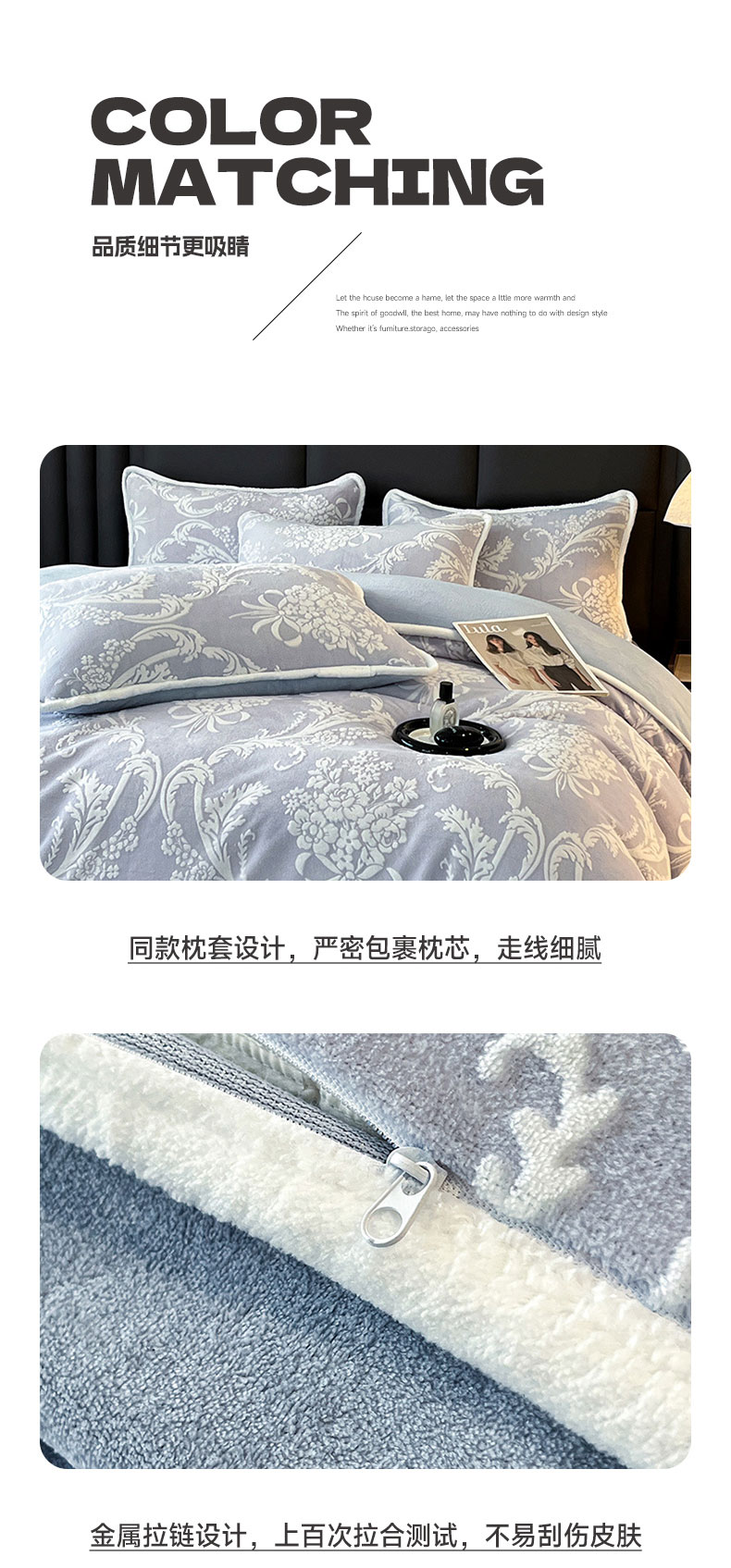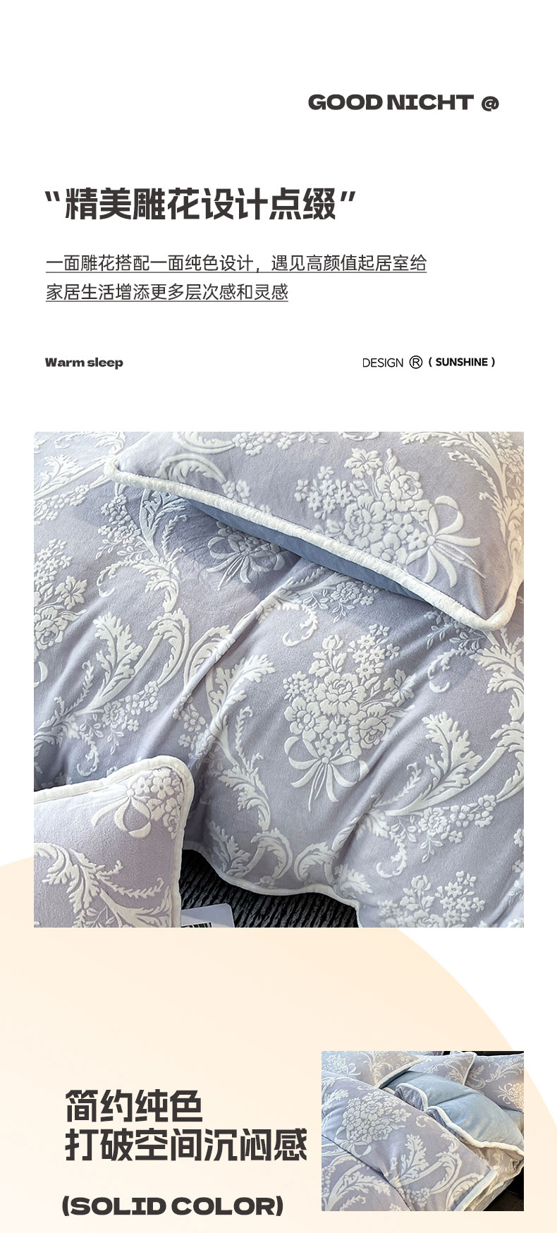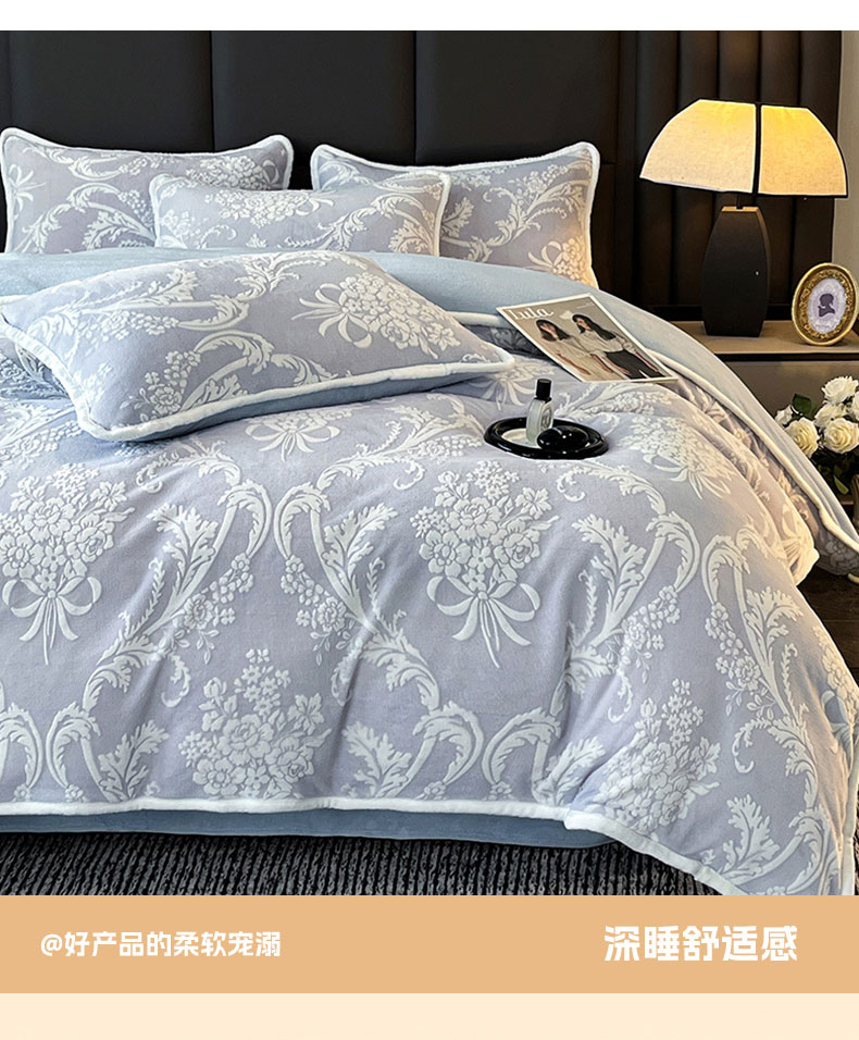 商品名称:妮恒美家纺 2025新款雕花牛奶绒四件套 法式浪漫-海蓝灰