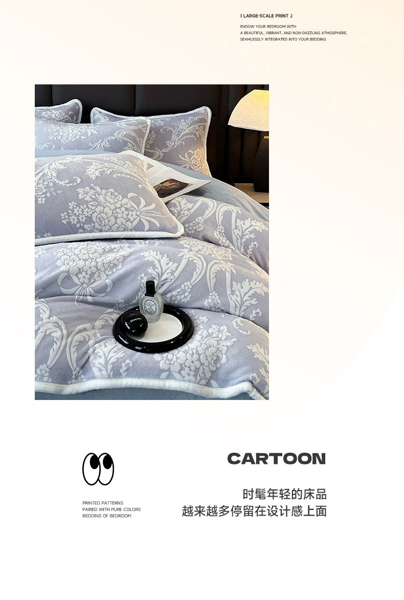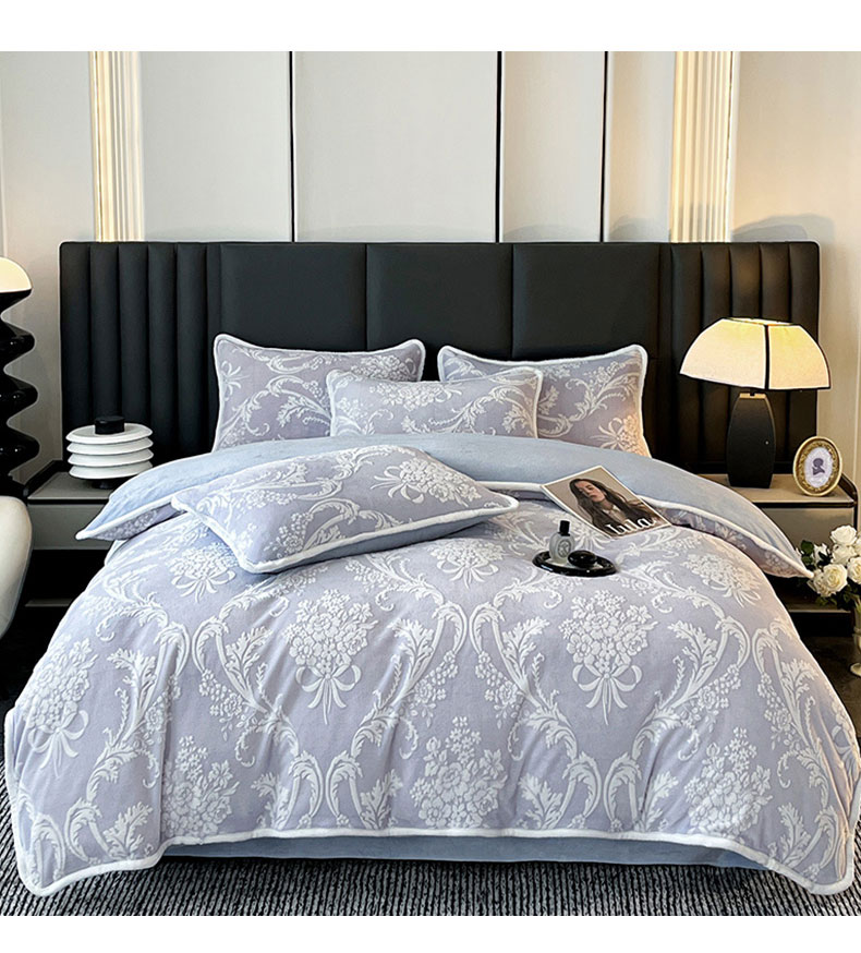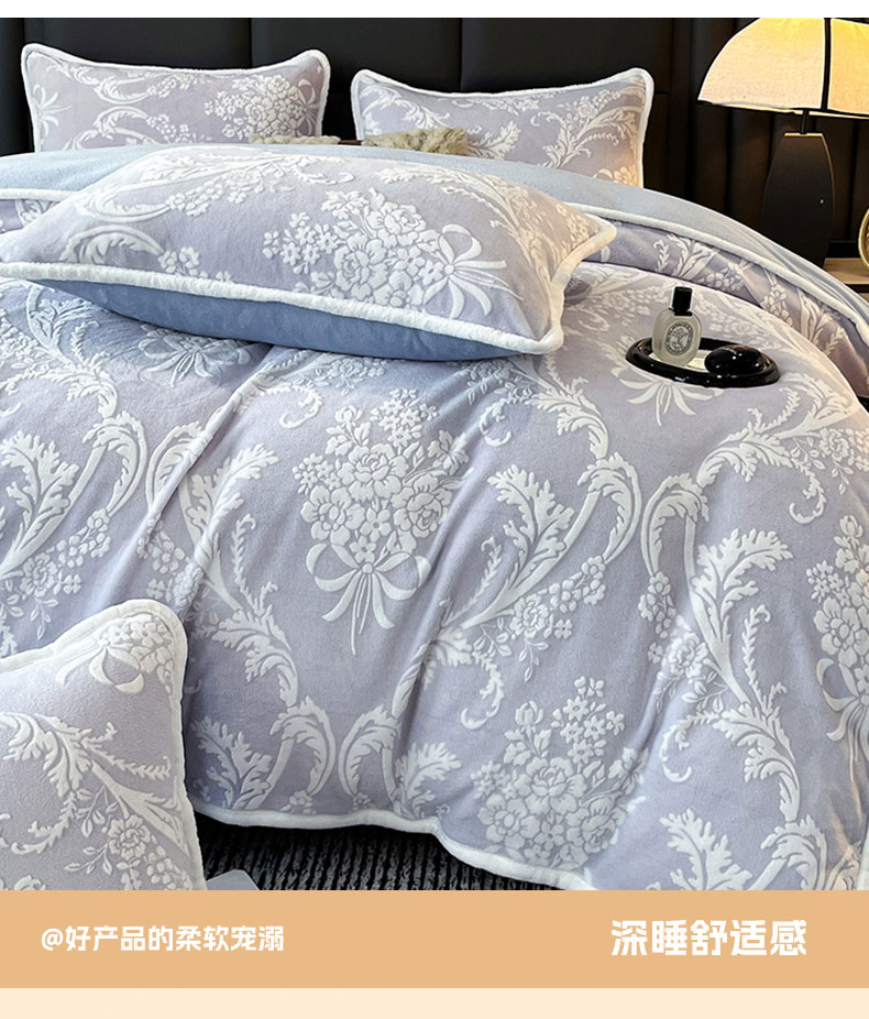 妮恒美家纺 2025新款雕花牛奶绒四件套 法式浪漫-海蓝灰