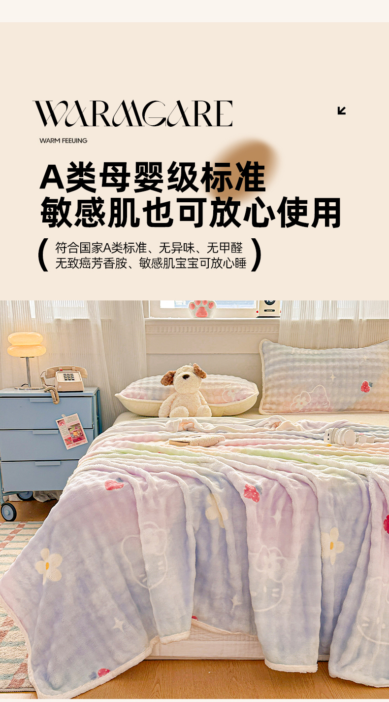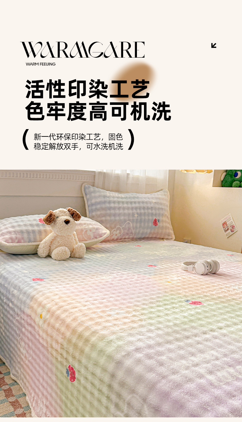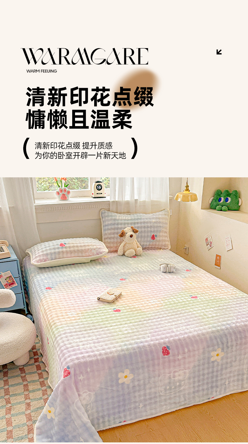 • 91家纺网 家纺一手货源 找家纺 丝芙妮家居(原乐视家纺) 2025新款A类牛奶泡泡绒印花单品床单 草莓小猫