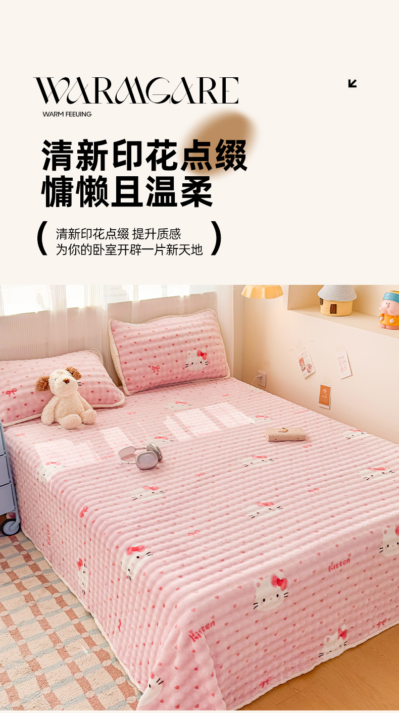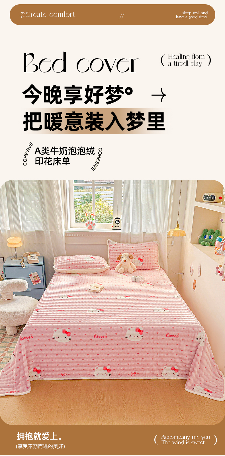 丝芙妮家居(原乐视家纺) 2025新款A类牛奶泡泡绒印花单品床单 甜糯凯蒂