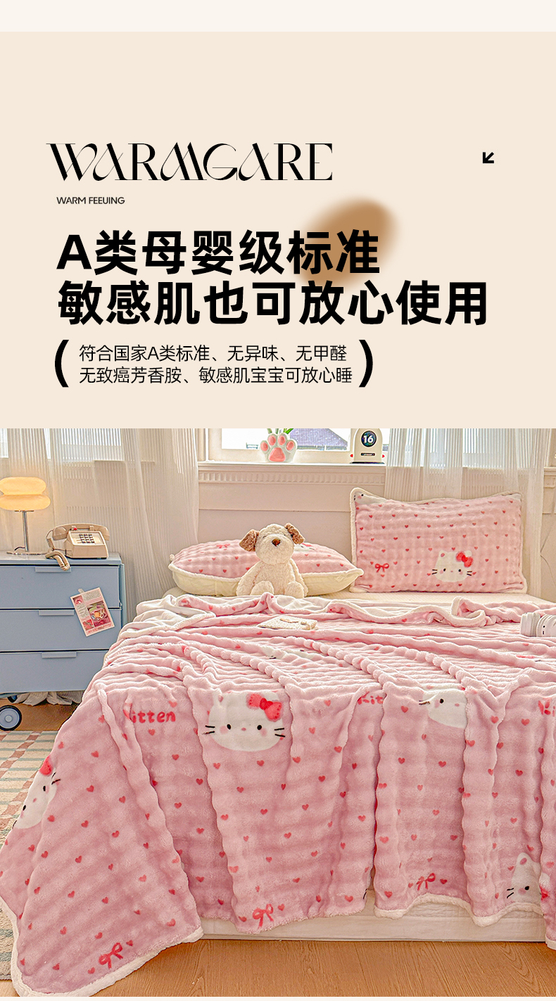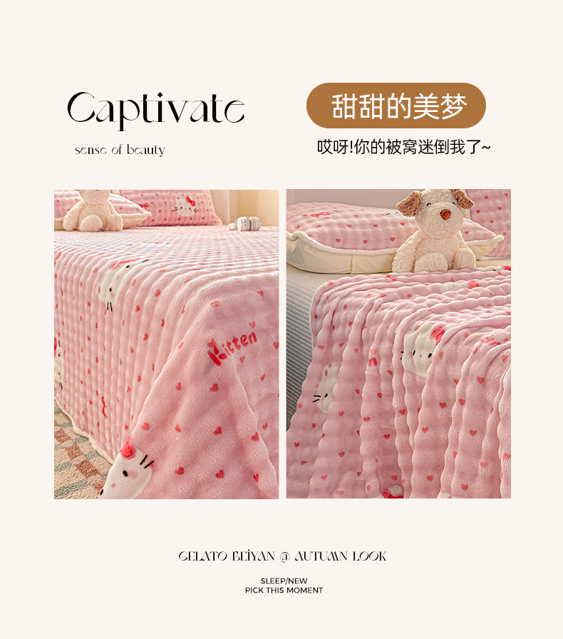 • 91家纺网 家纺一手货源 找家纺 丝芙妮家居(原乐视家纺) 2025新款A类牛奶泡泡绒印花单品床单 甜糯凯蒂