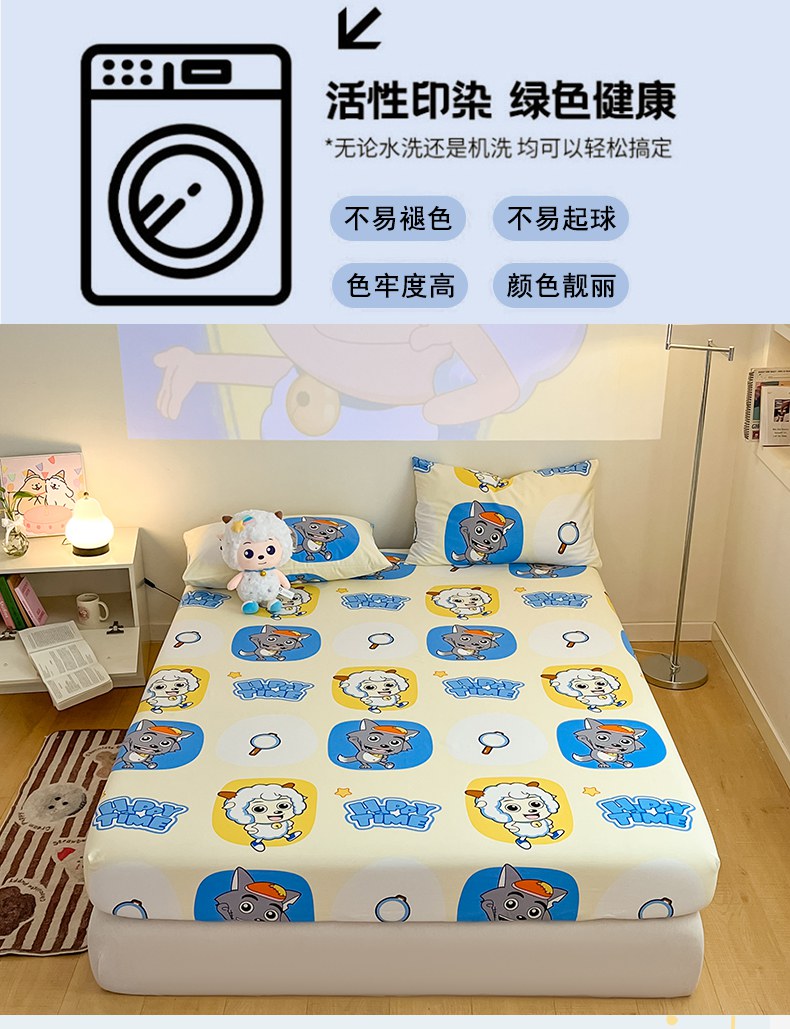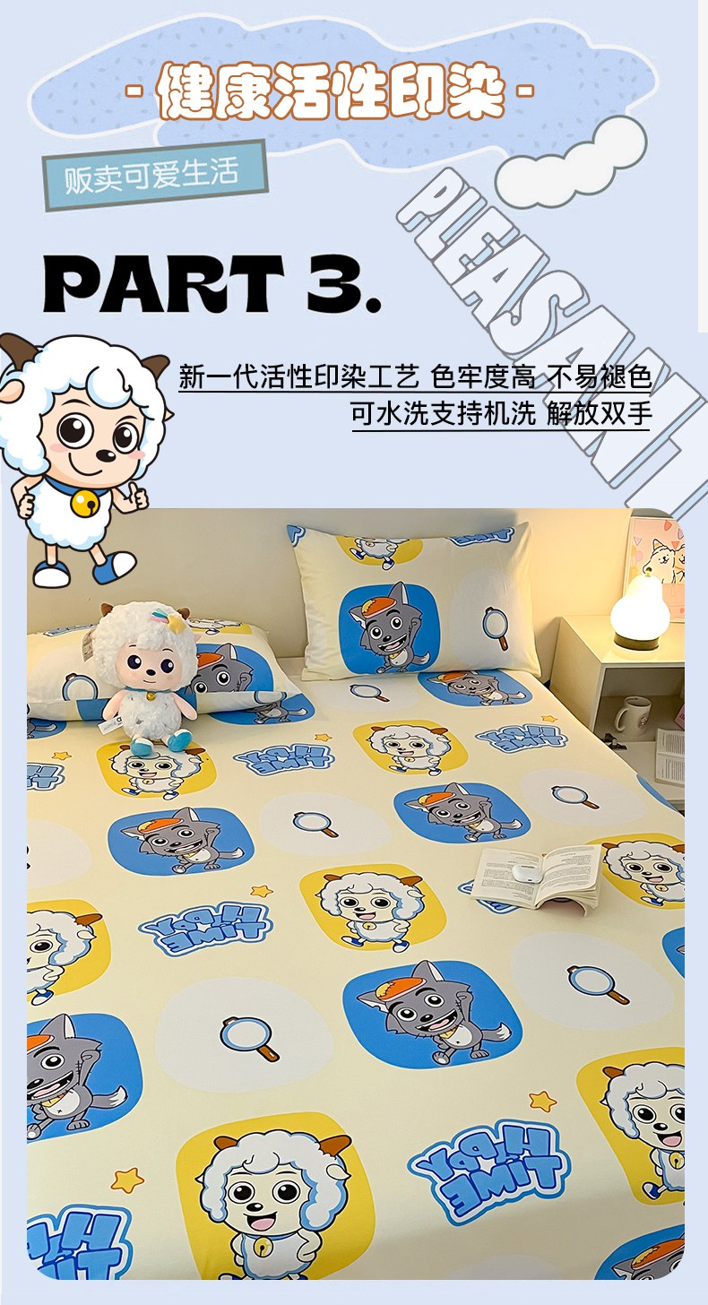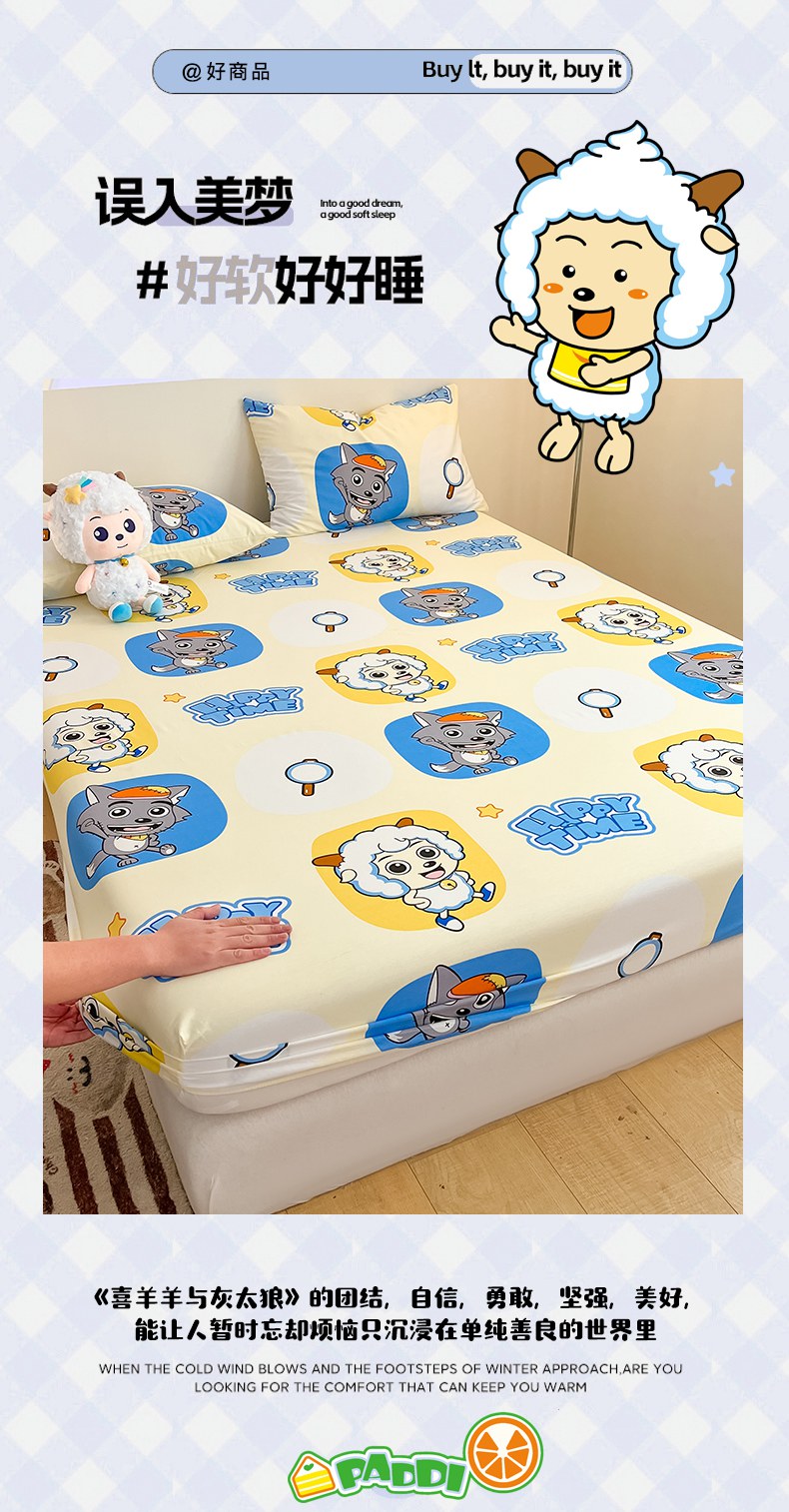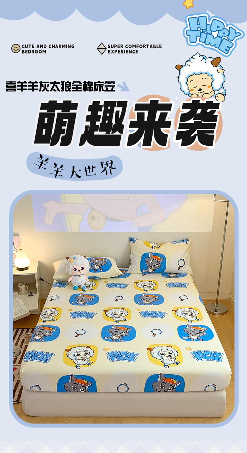 商品名称:金鑫汇家纺 2025新款喜羊羊与灰太狼全棉单品床笠 狼羊童话梦