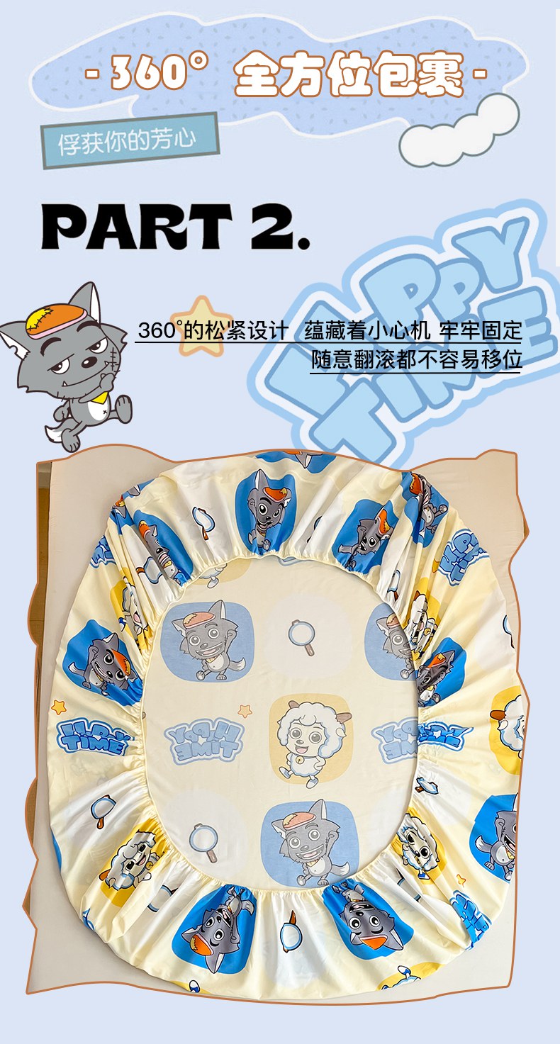 金鑫汇家纺 2025新款喜羊羊与灰太狼全棉单品床笠 狼羊童话梦