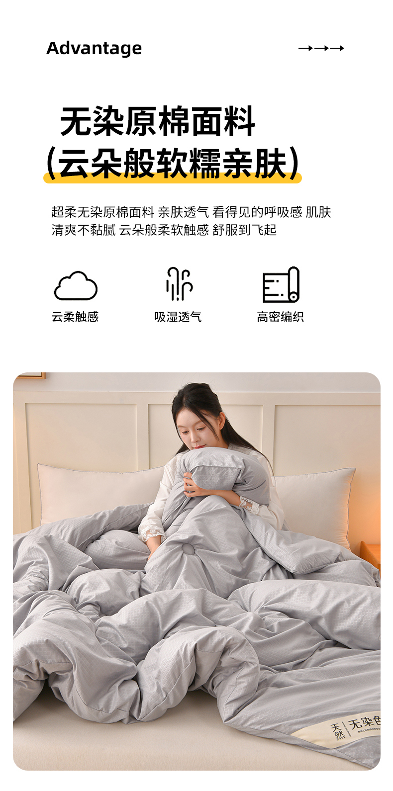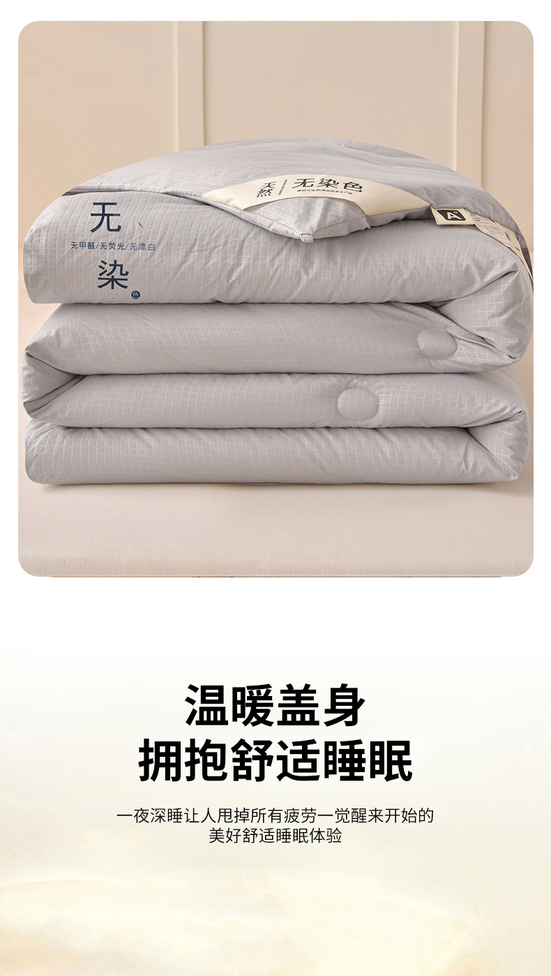 当前位置: 91家纺网 > 商品网购 > 被子 > 冬被 > 苏迪网销供货 2025新款A类无染原棉冬被被子被芯 灰色