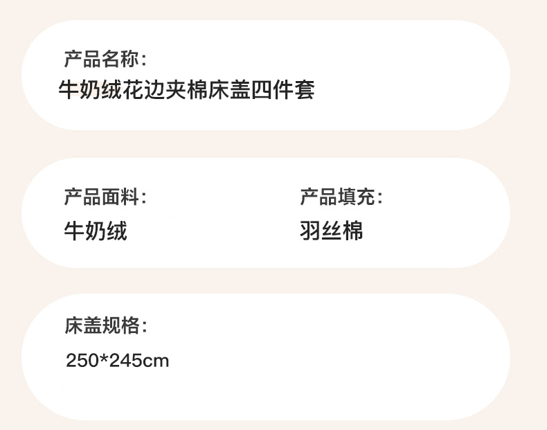 商品名称:美梦家纺 2025新款牛奶绒花边夹棉床盖四件套 蕾丝花-蓝