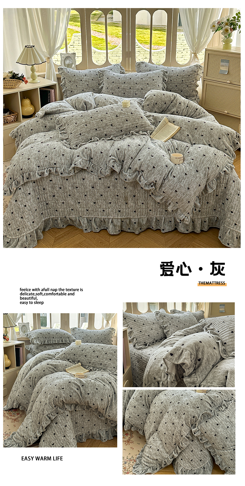 (总)美梦家纺 2025新款牛奶绒花边夹棉床盖四件套,爱心-灰,蝴蝶结-紫,蝶舞,蕾丝花-蓝,豆蔻,咖波点,蝴蝶结-灰,灵动草莓-米,秋叶-咖,甜美女孩,乌梅紫酱,星辰蝶语-紫,雨后花园,紫色物语,冰淇淋