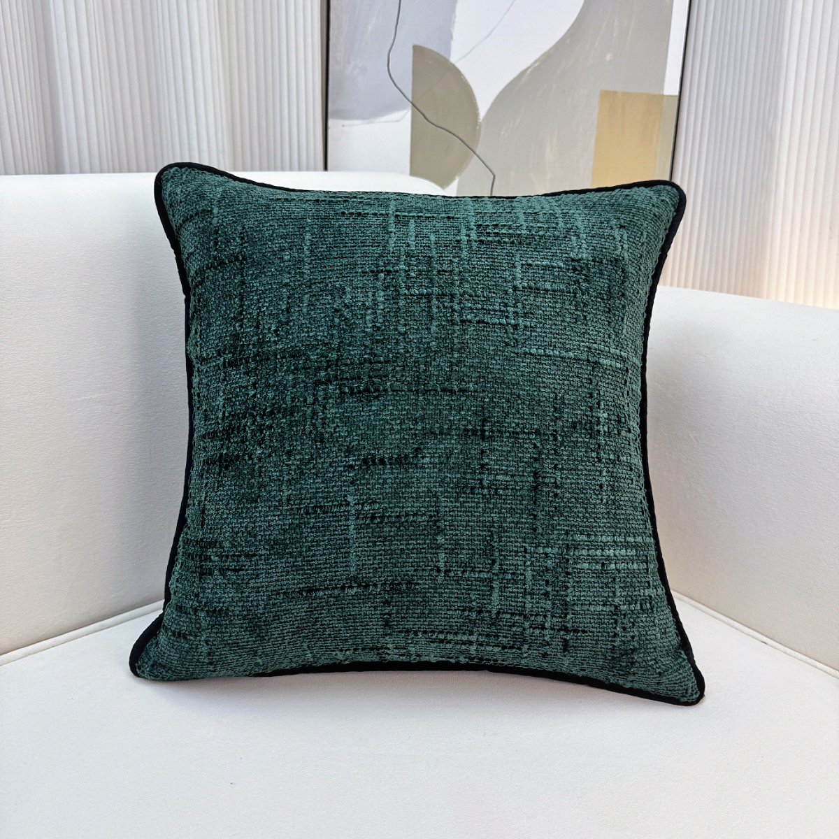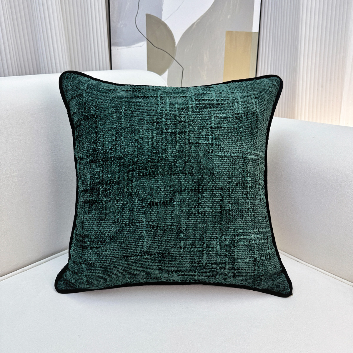 爱家居 2025新款纯色加厚雪尼尔纹理抱枕轻奢家居靠垫沙发床头靠包枕可拆洗 轻奢雪尼尔—墨绿
