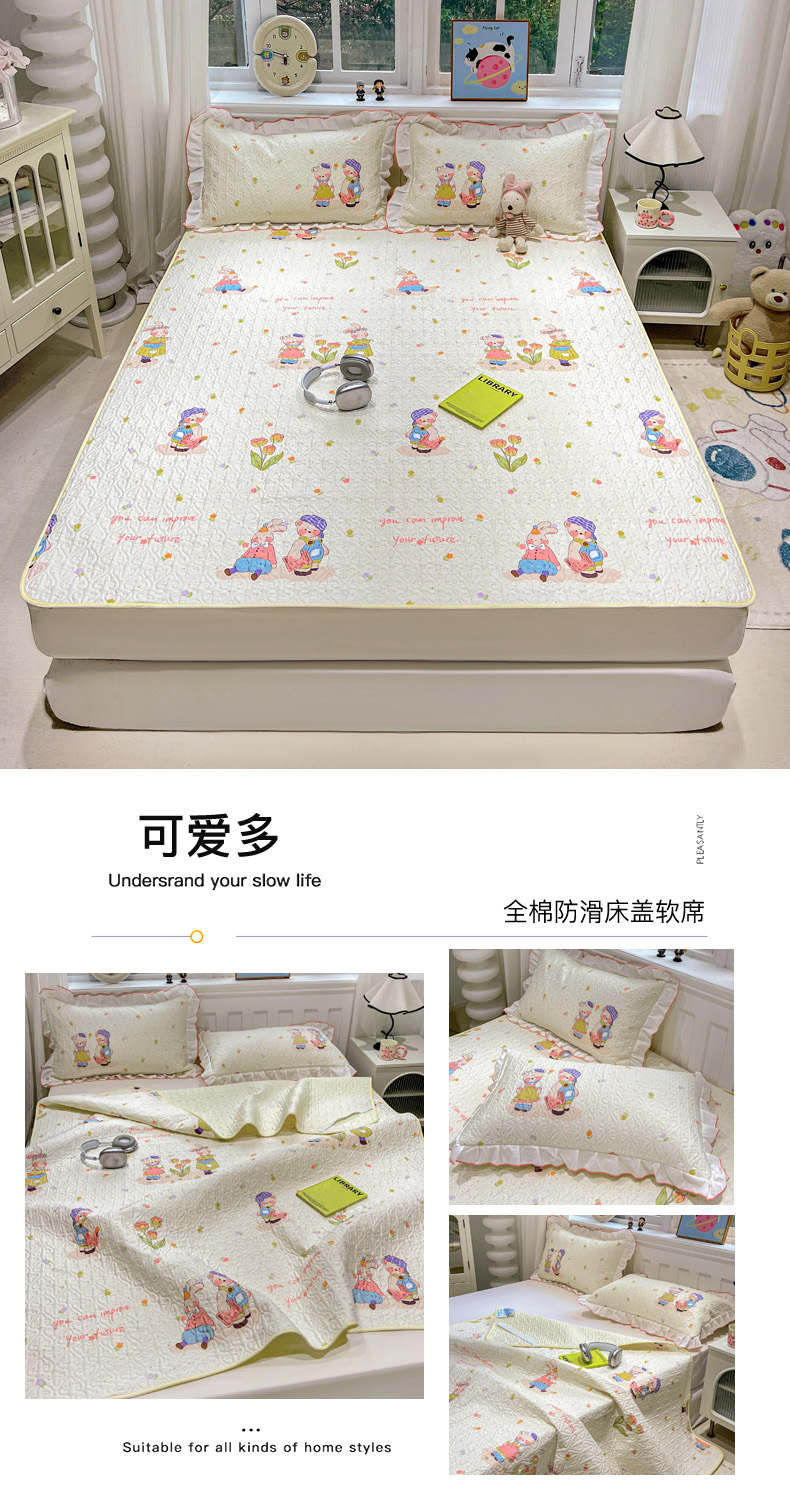 • 91家纺网 家纺一手货源 找家纺 羽爱家纺 2025新款舒适可定制全棉防滑床盖软席可爱多