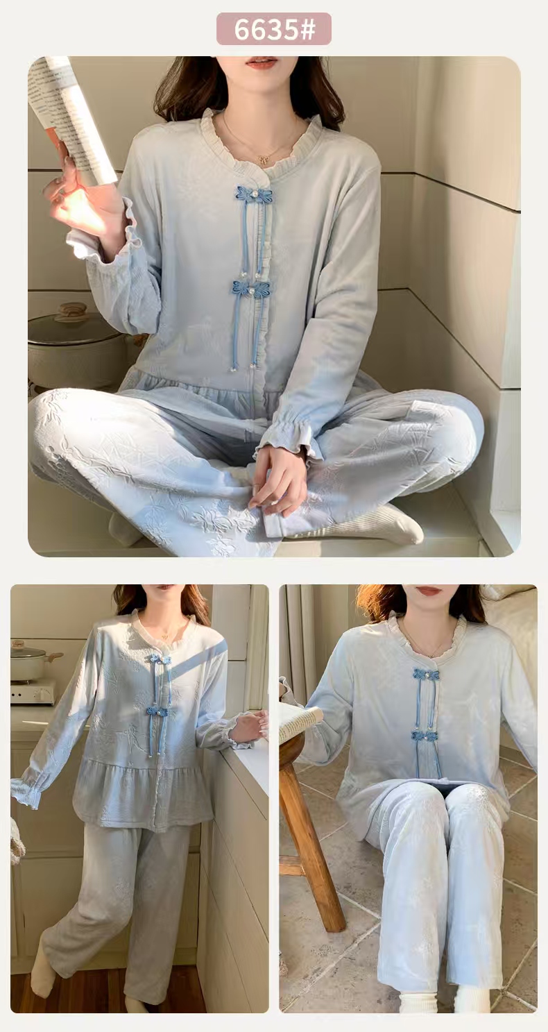 (总)洛兰沙家居馆 2024新款公主风女秋冬季三层夹棉珊瑚绒加厚保暖两件套女士可外穿加绒家居服,L01,L02,L03,L04,L05,L06,L07,L08,L09,L10,L11,L12,L13,L14,L15,L16,L17,L18