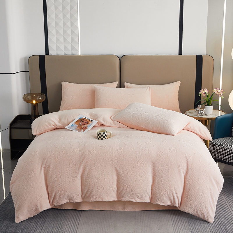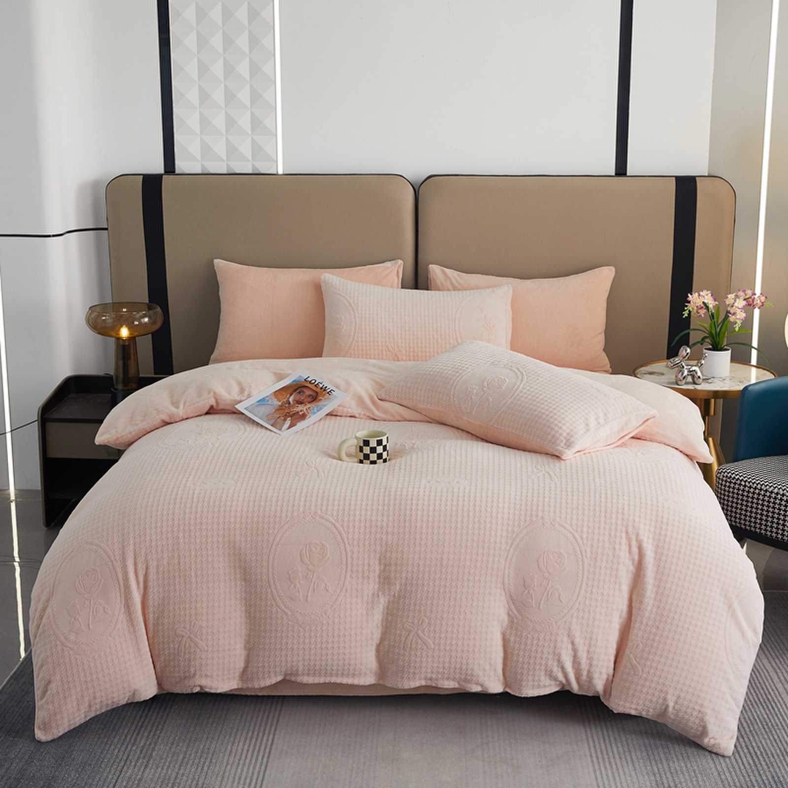 卡诗兰 2025款高克重纯色牛奶绒雕花四件套 玉色
