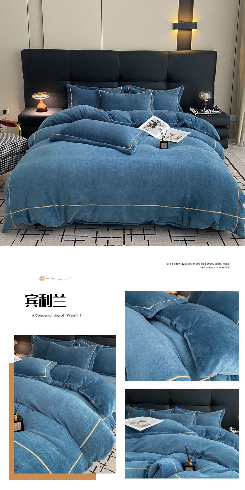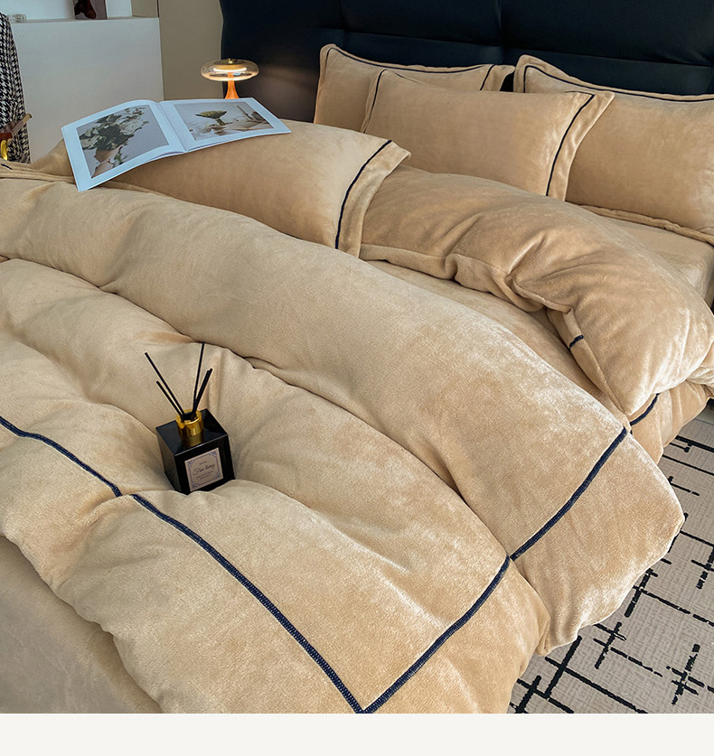 商品名称:卡诗兰2025款高克重加厚牛奶绒十字绣四件套 钻石浅蓝