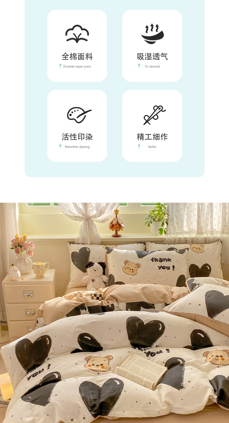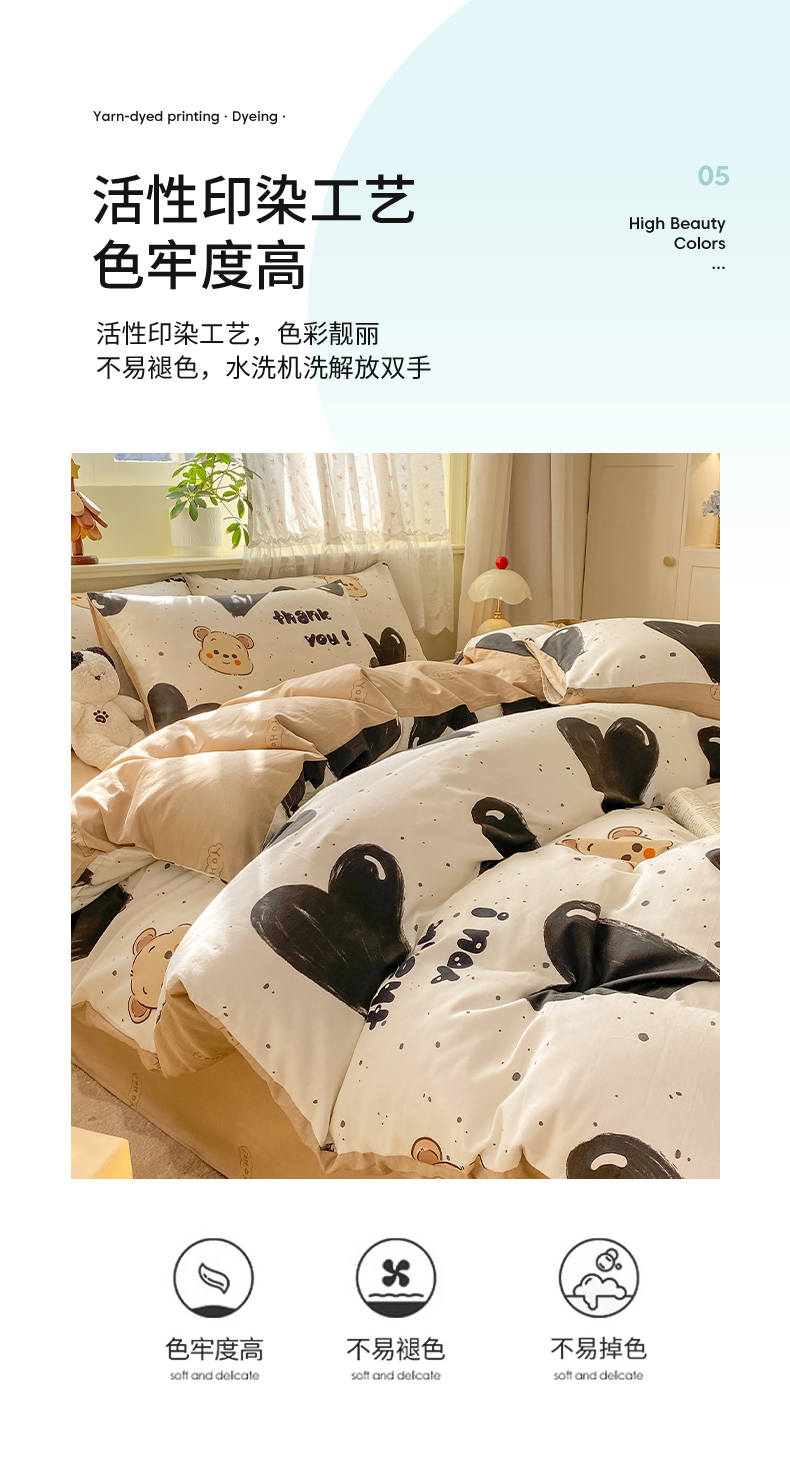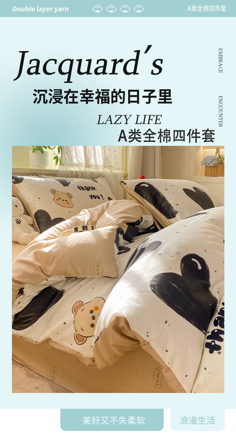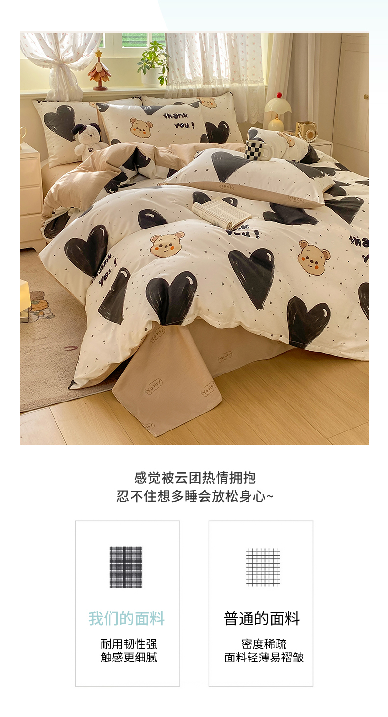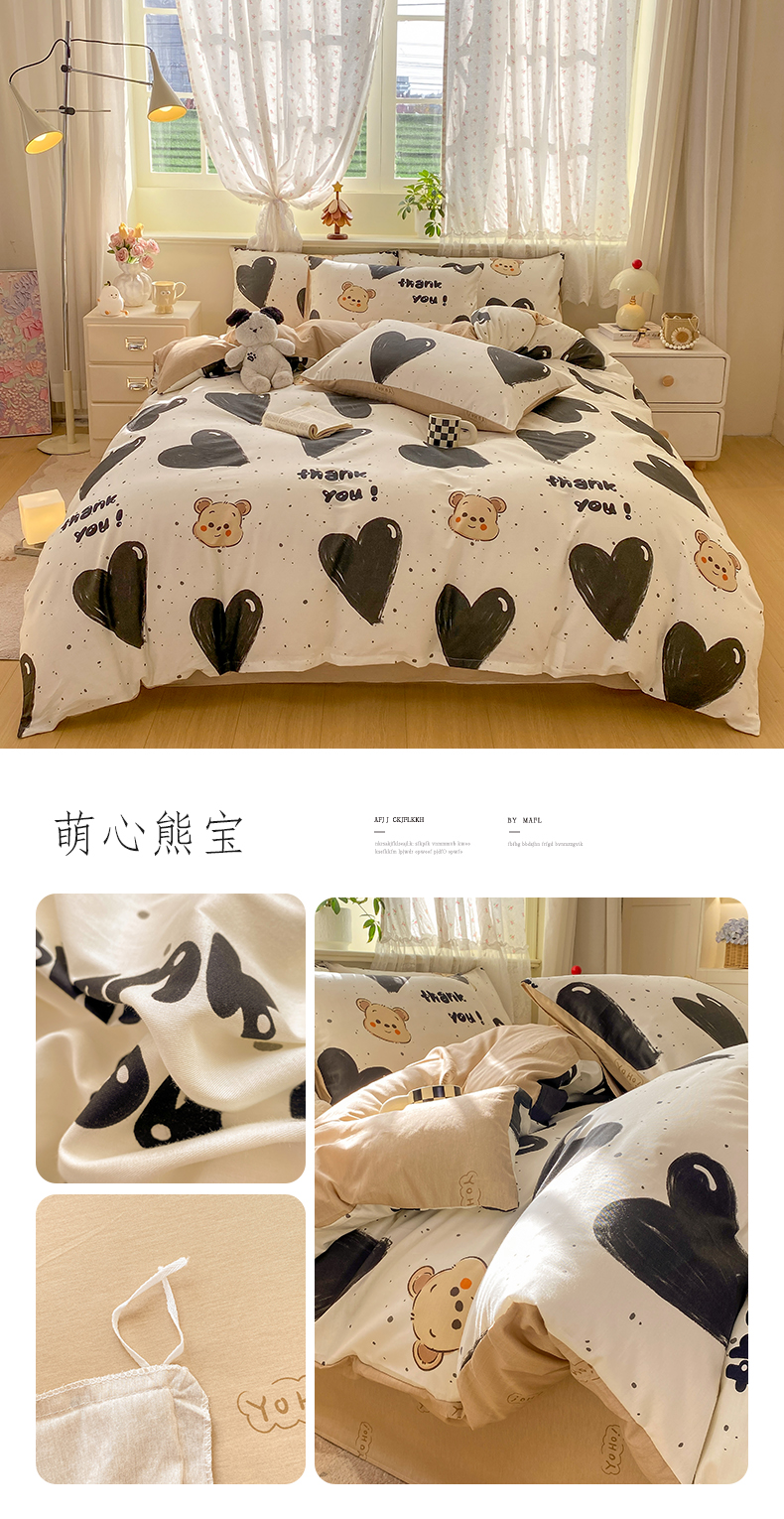 当前位置: 91家纺网 > 商品网购 > 床品套件 > 四件套 > 全棉普通四件套 > 红日子纺织品 2026新款12868纯棉全棉印花卡通系列四件套 萌心熊宝