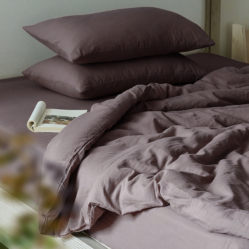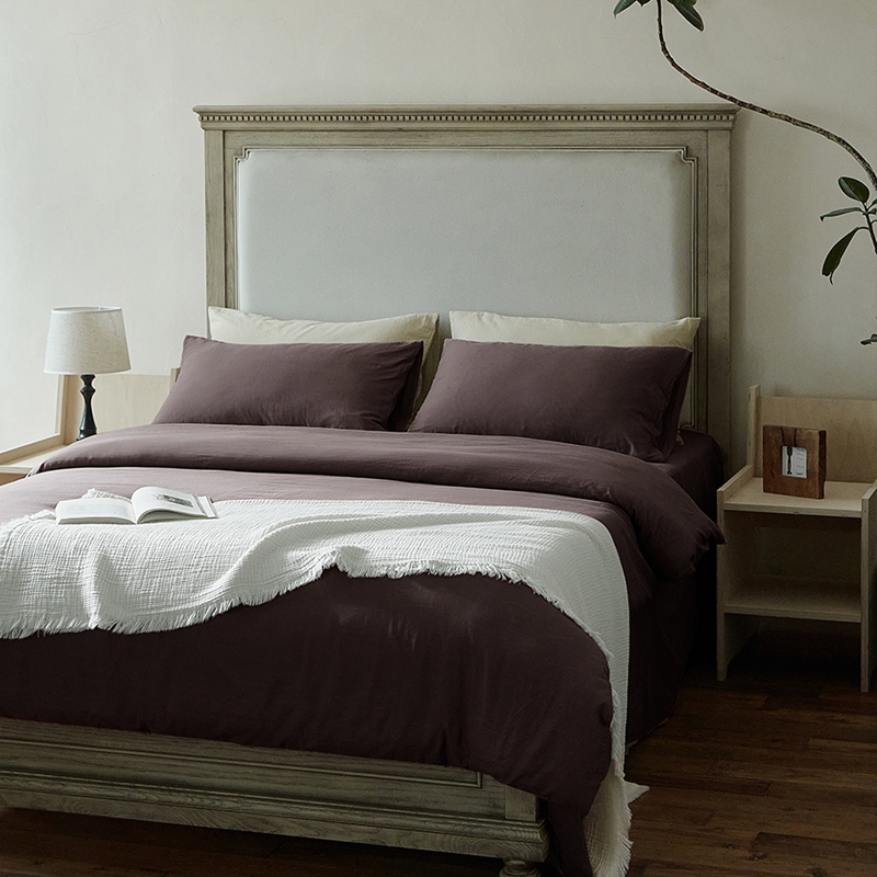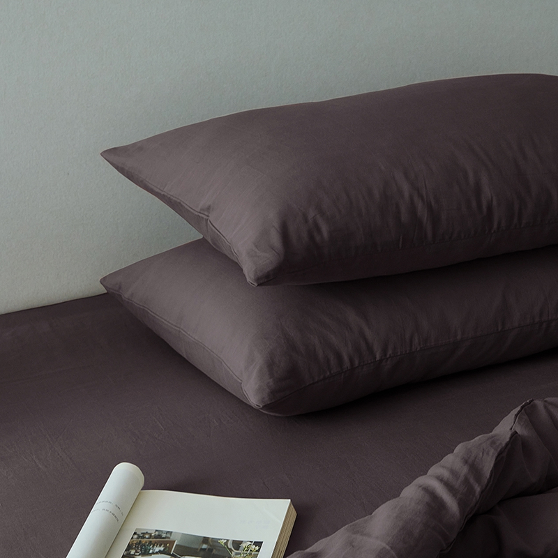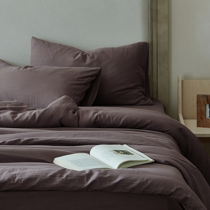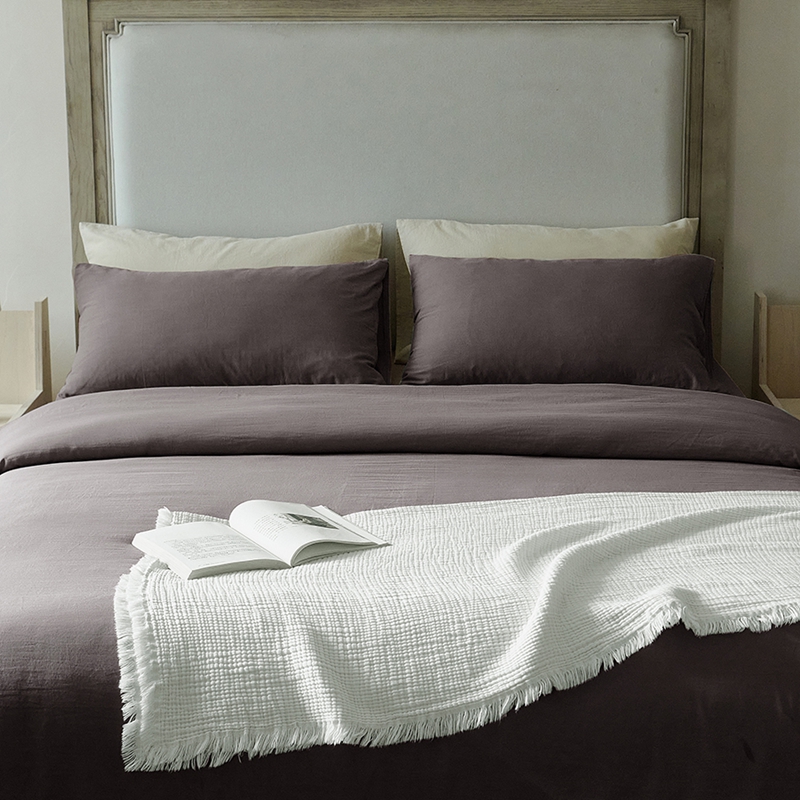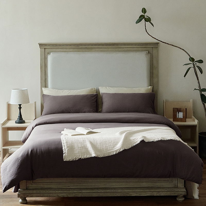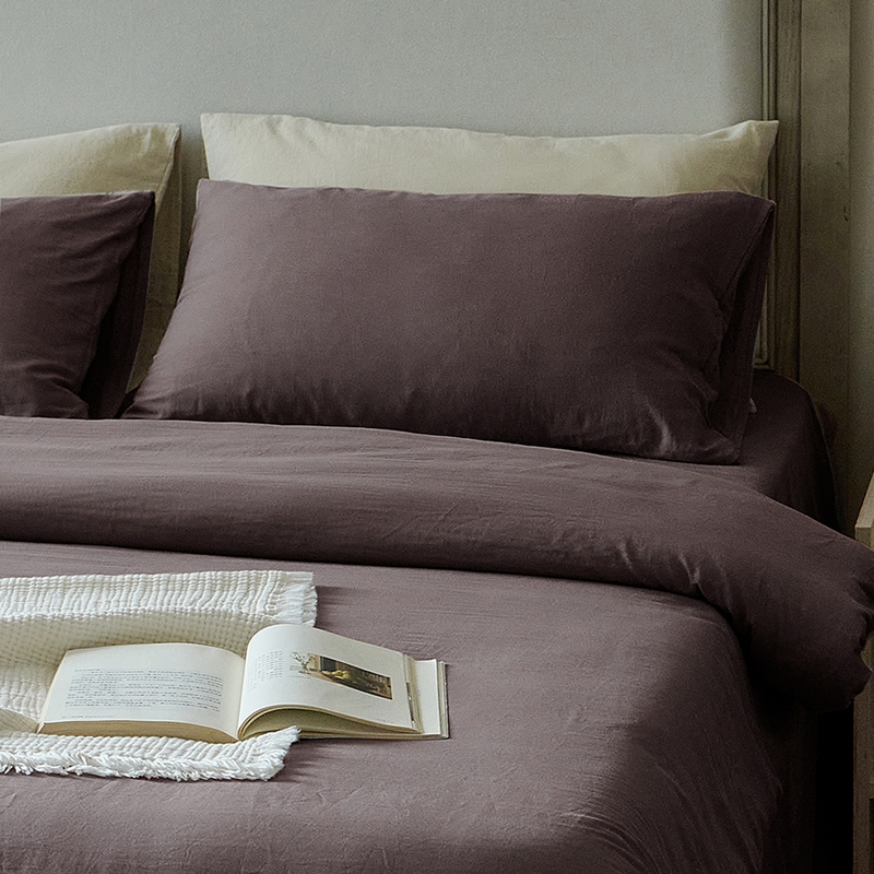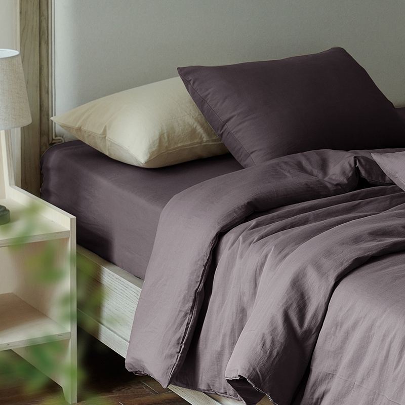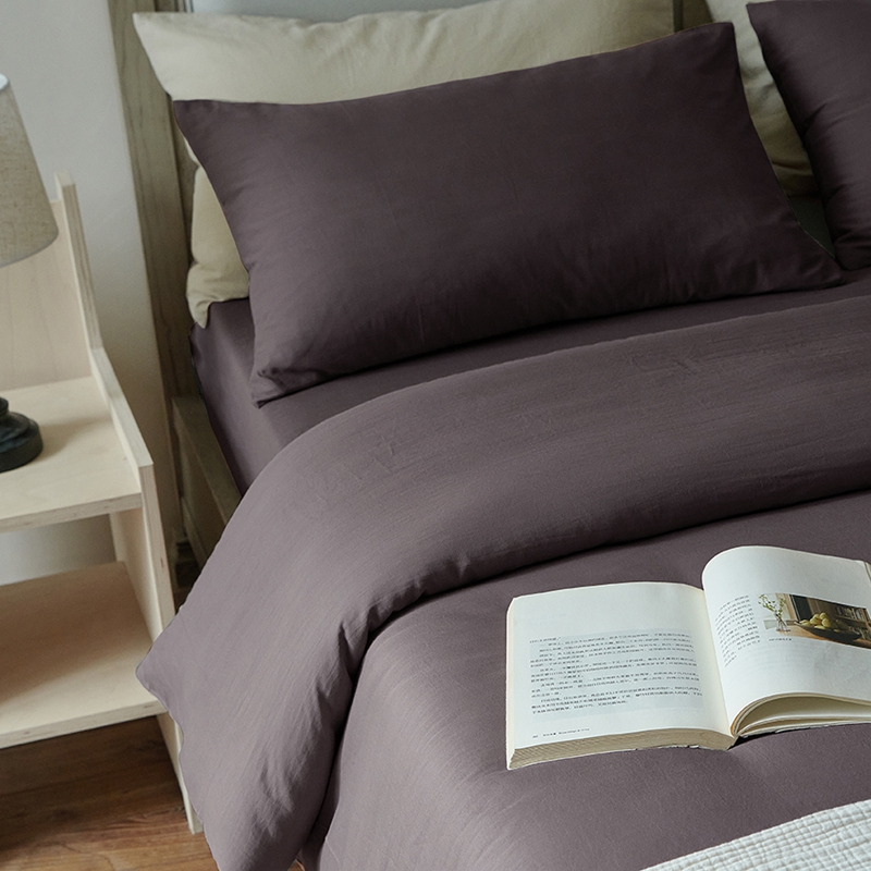 商品名称:子和家居 2025新款80支高密全棉双层纱四件套-云憩 云憩-乌梅紫
