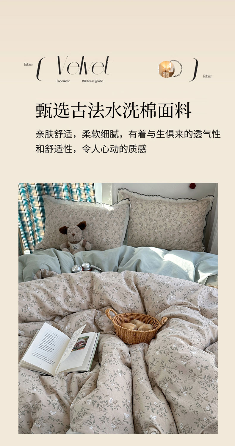 当前位置: 91家纺网 > 商品网购 > 床品套件 > 四件套 > 水洗棉四件套 > 凯洛奇 2026新款仿棉古法水洗棉复古法式花边四件套 萌趣象