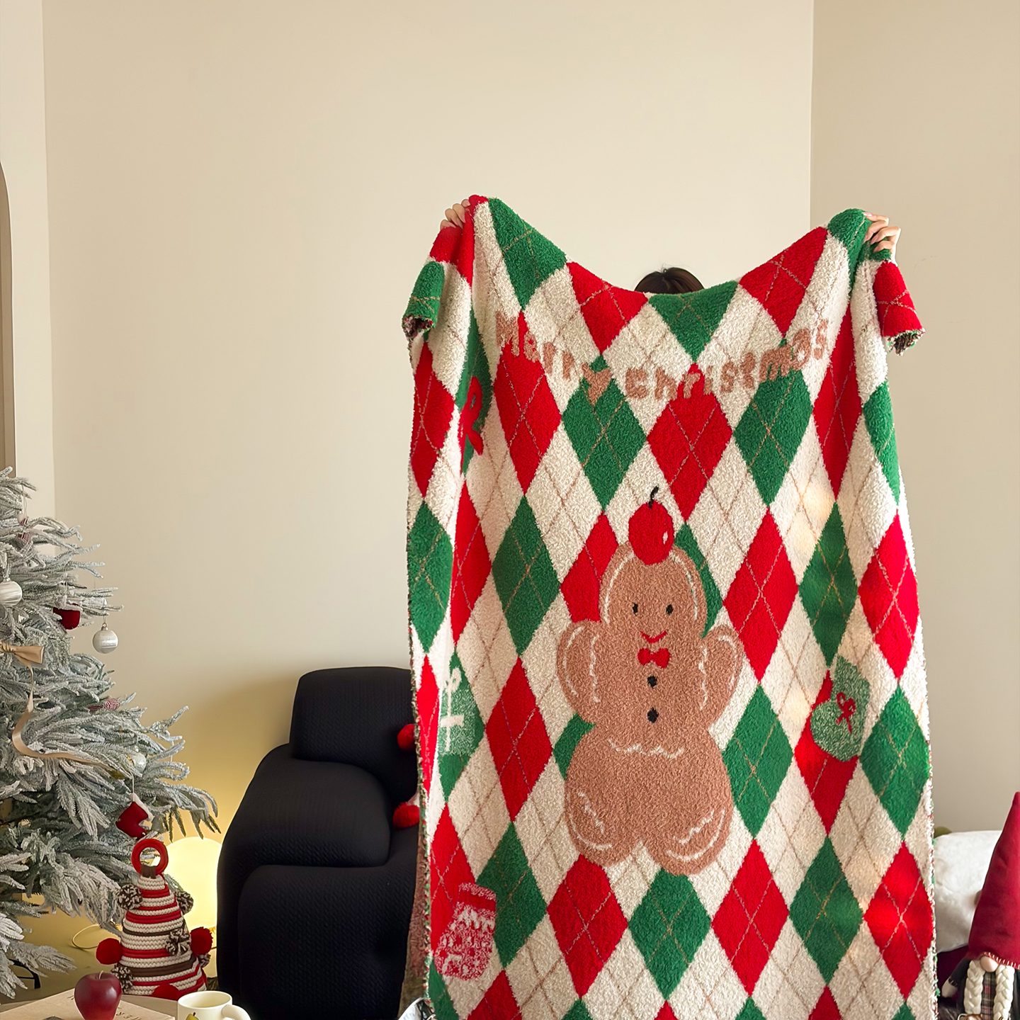 觅糖家纺 2025新款圣诞限定暖绒盖毯 圣诞小熊