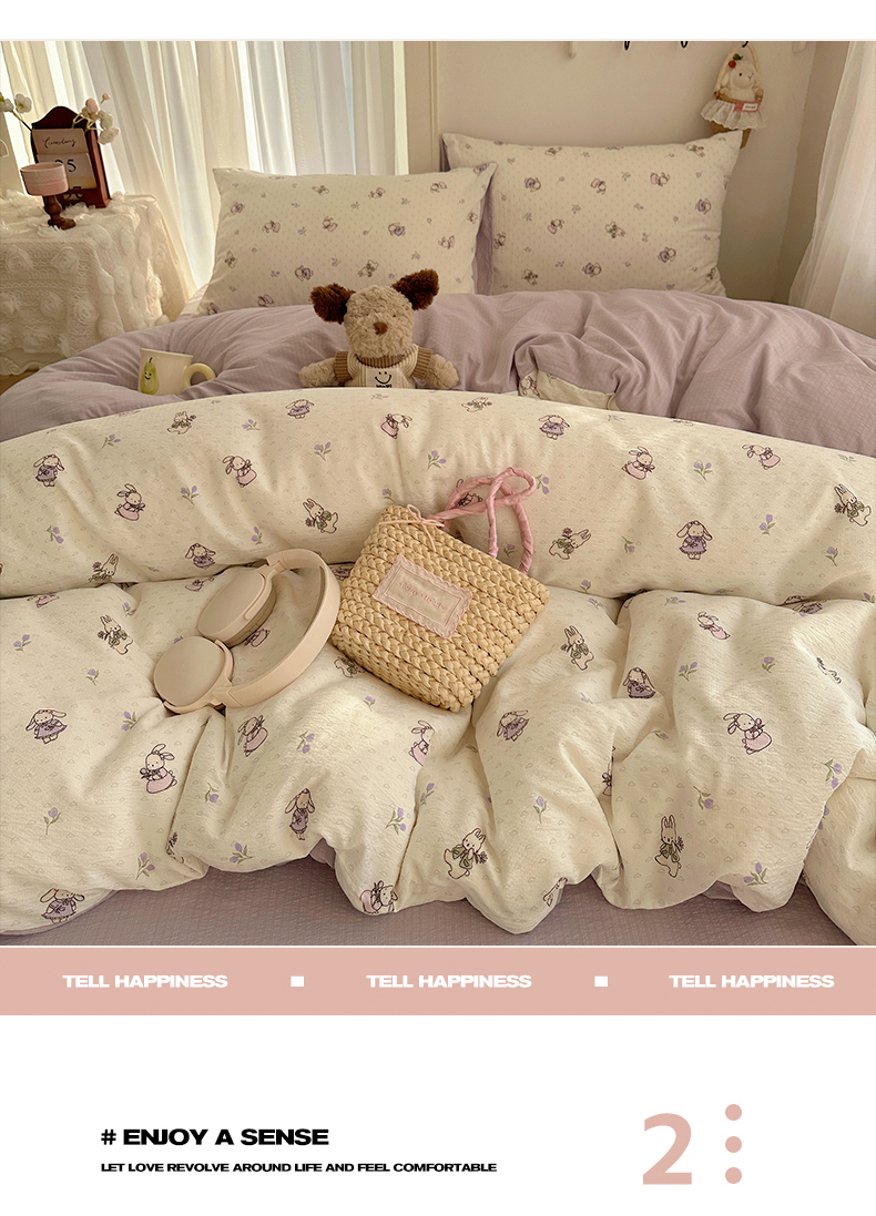 当前位置: 91家纺网 > 商品网购 > 床品套件 > 四件套 > 双层纱四件套 > 星禾优选 2025新款全新热款敲可爱的奶呼呼云感双层纱简约四件套系列(提供买家秀) 裙子小兔