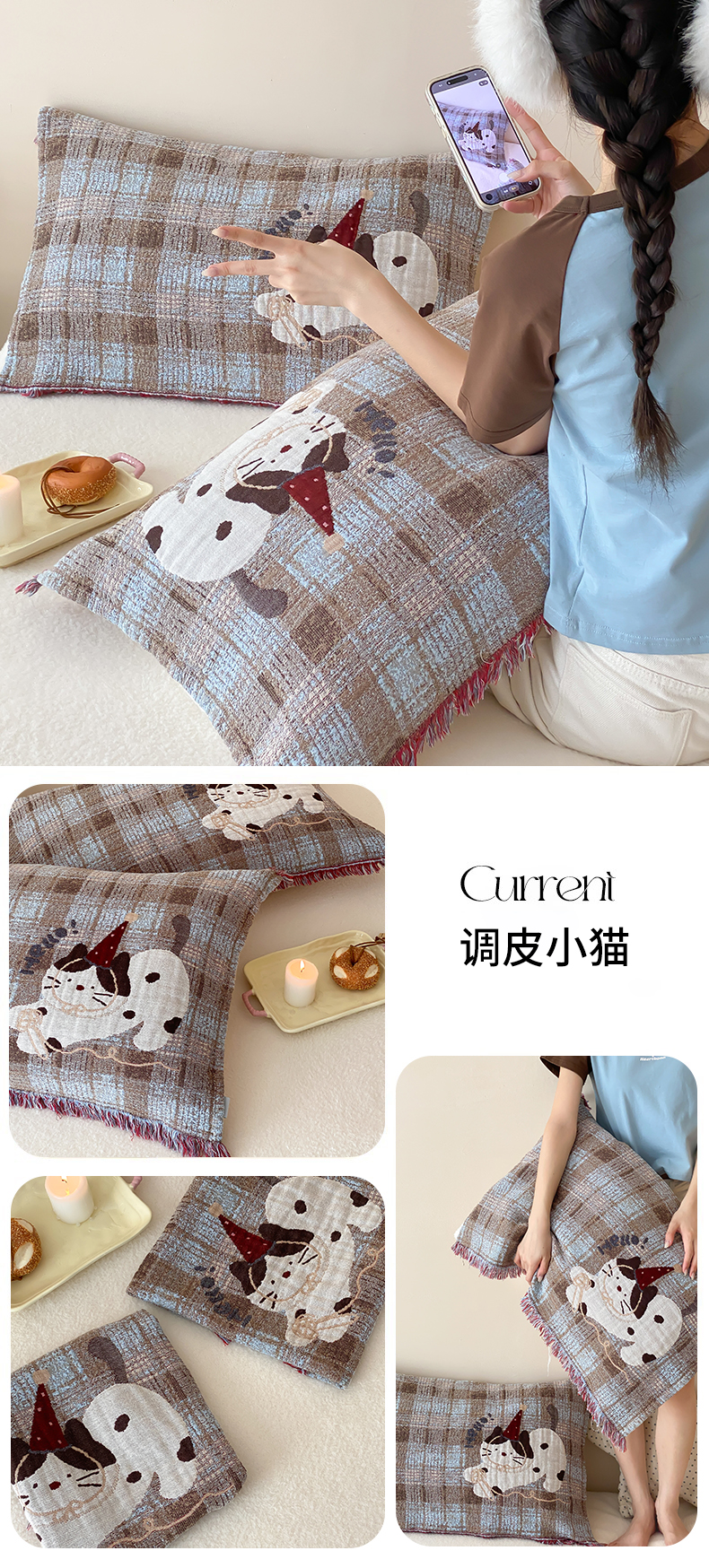 (总)麻依 2025新款安心棉枕巾四层全棉纱布枕头皮,布朗兔,彩虹点点,点点蝴蝶结-粉,点点蝴蝶结-米白,搞怪猫,韩系小樱桃,焦糖草莓,兰溪,漫语,木栖,天猫精灵,小波点,组合图
