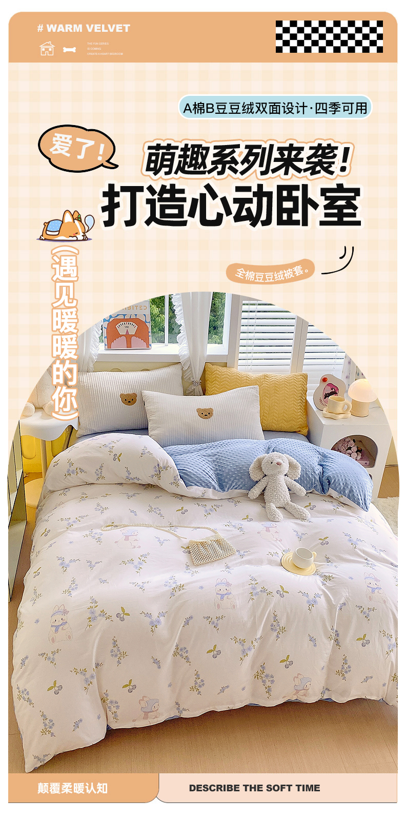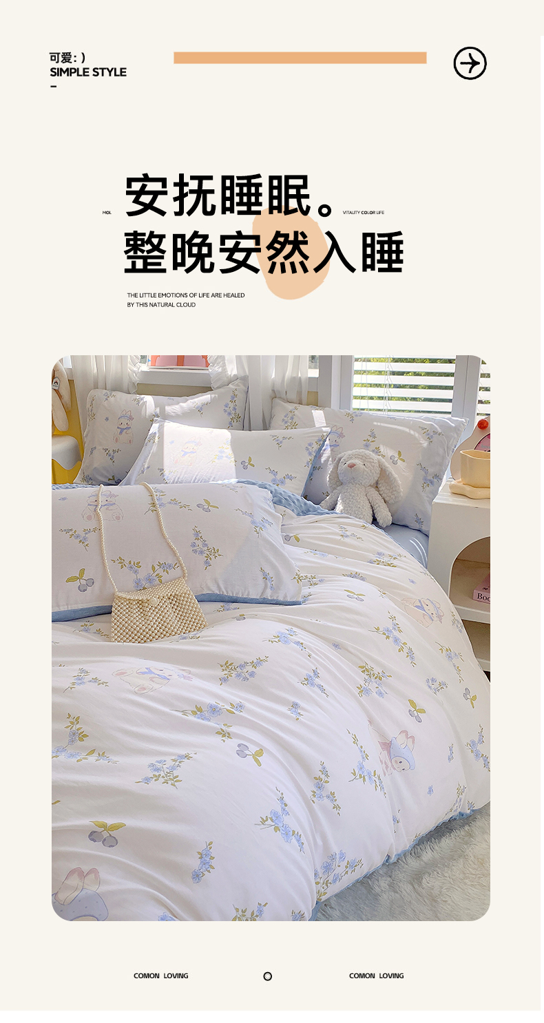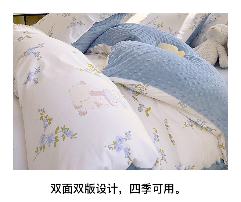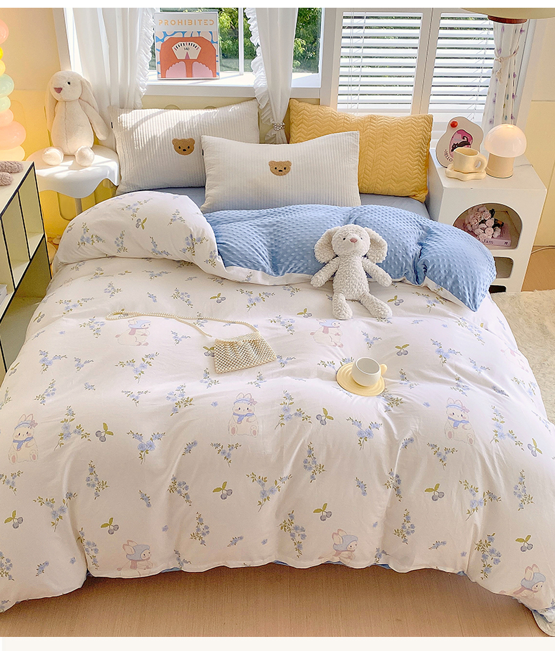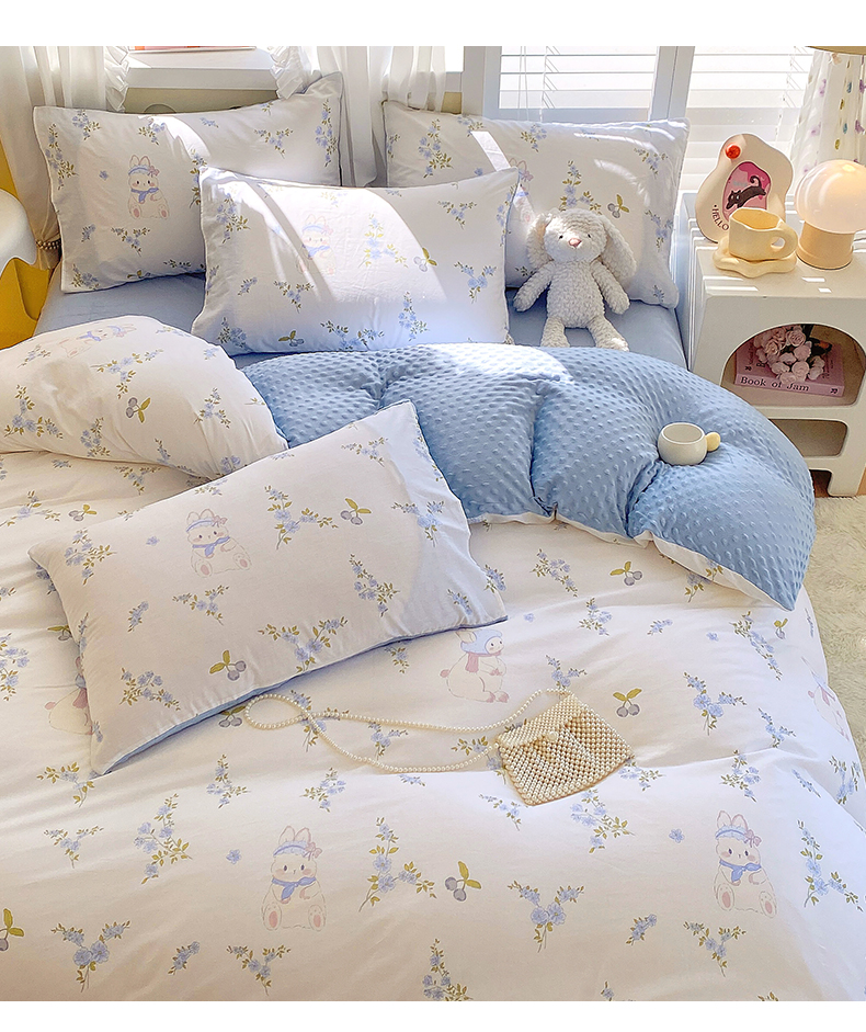 商品名称:金鑫汇家纺 2025新款全棉豆豆绒系列单被套-棉加绒系列 棉加豆豆绒-花丛兔