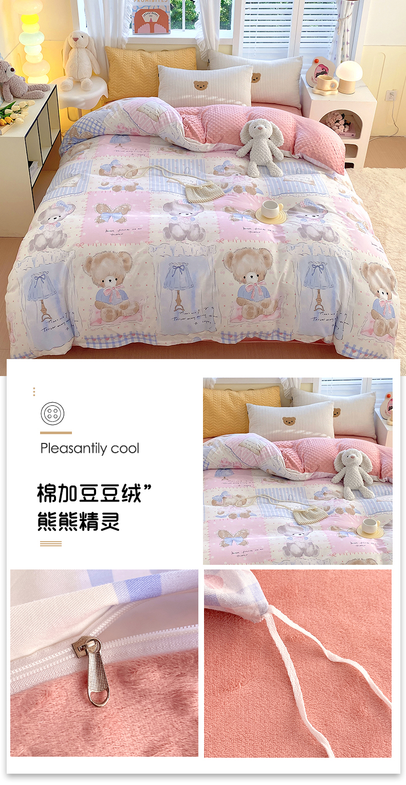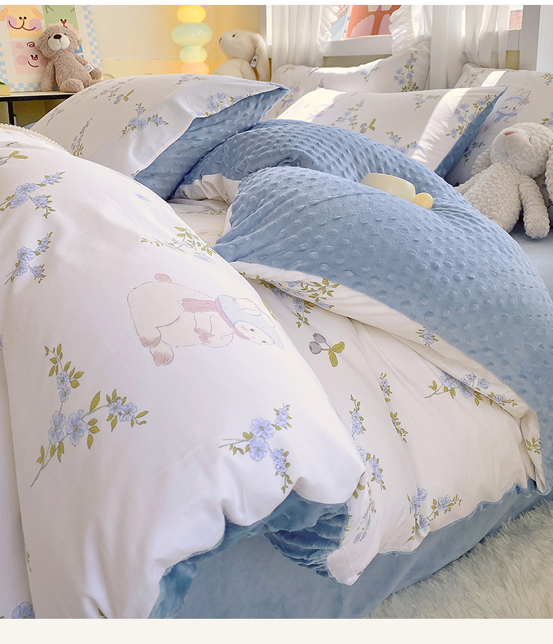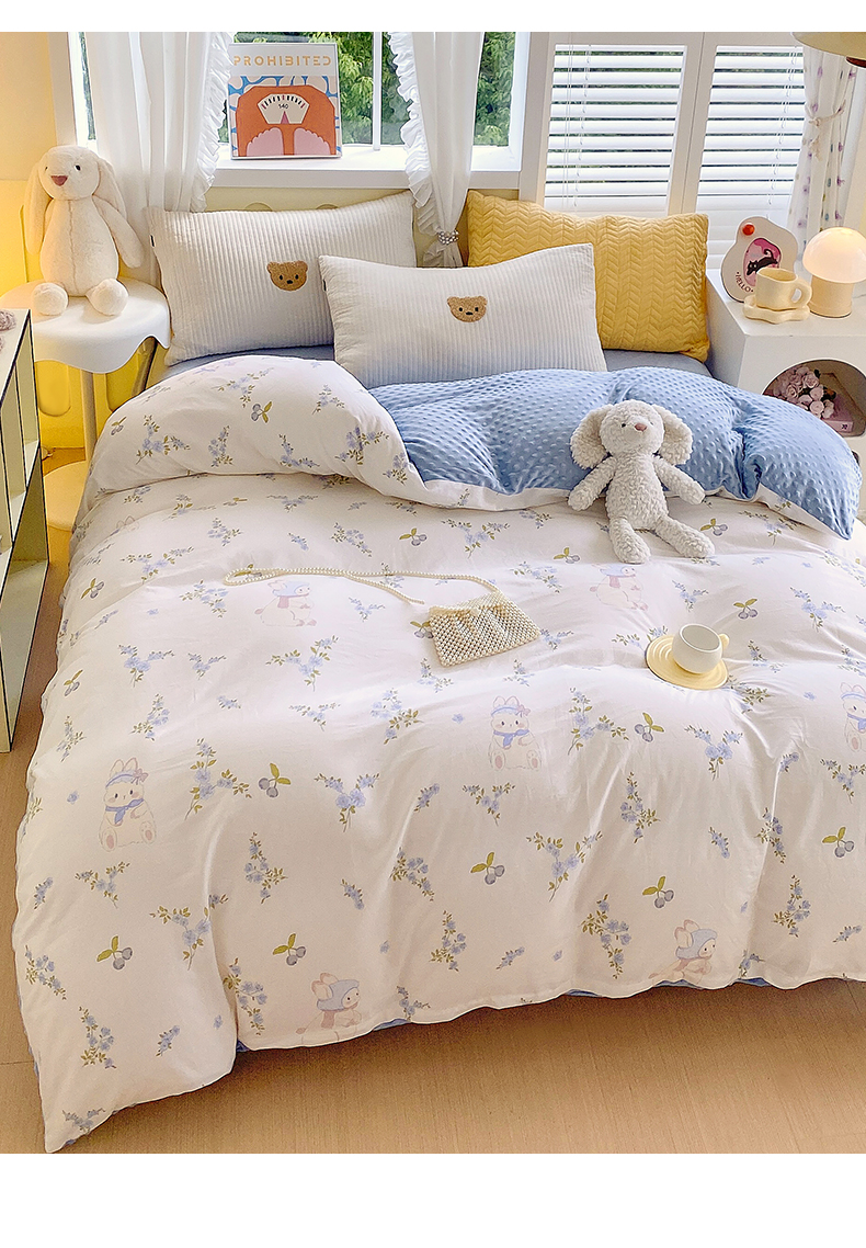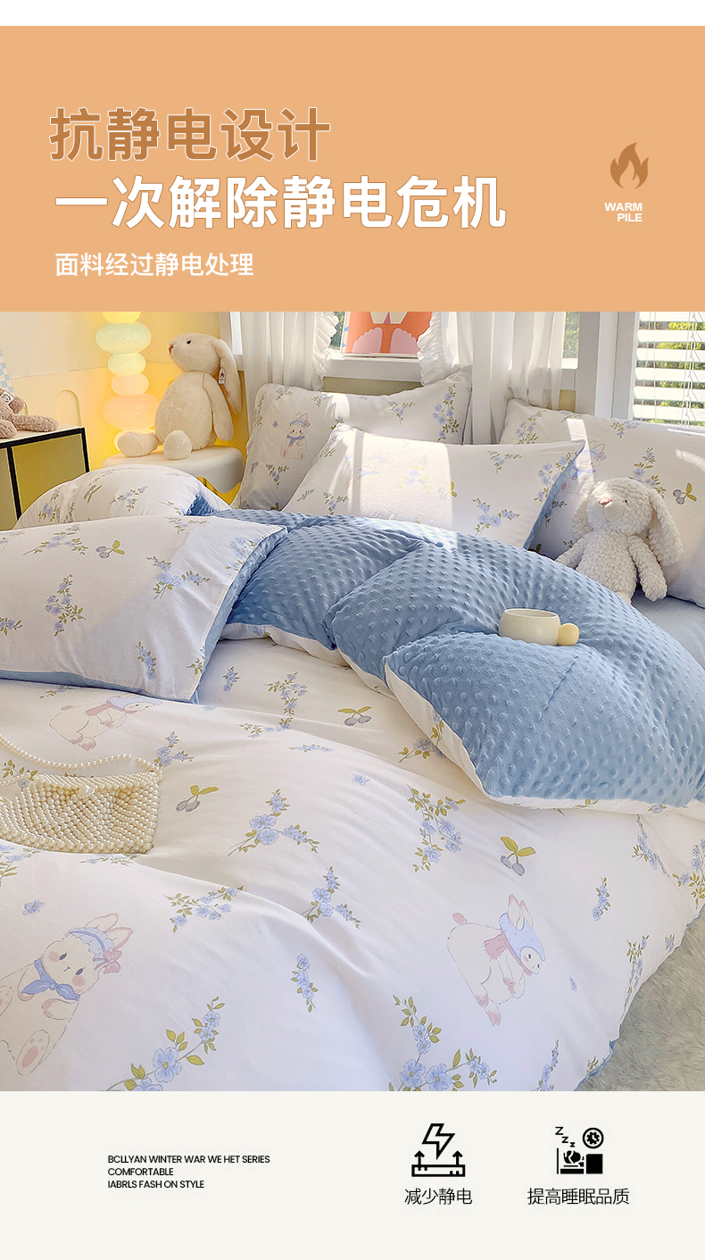 金鑫汇家纺 2025新款全棉豆豆绒系列单被套-棉加绒系列 棉加豆豆绒-花丛兔