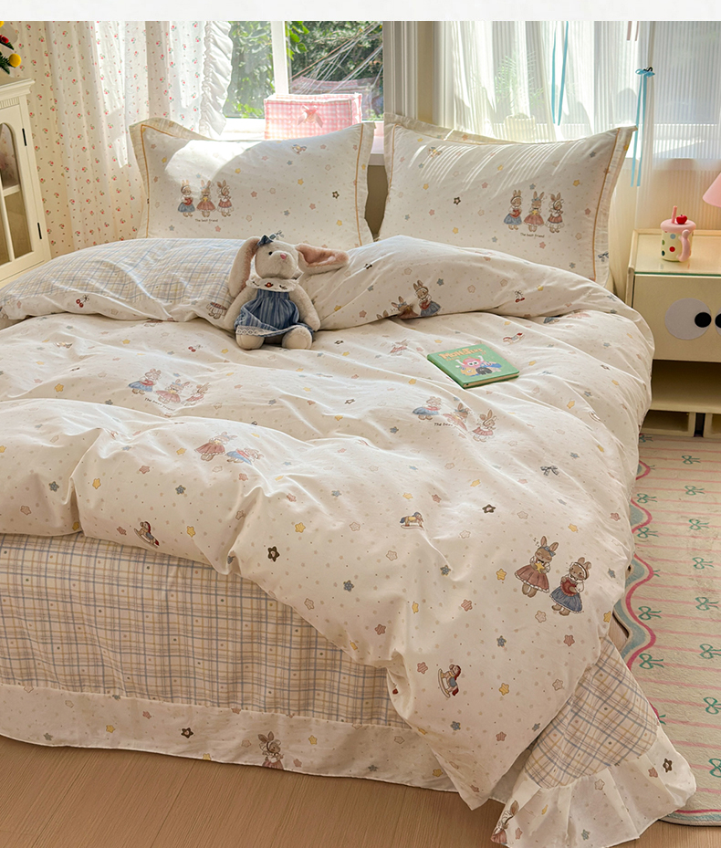 (总)乐童家纺 2026新款全棉纯棉拼接花边小清新工艺款四件套,彩虹木马,春日小兔,花田兔兔,凯莉梦境,口袋故事,浪花轻歌,毛线彩虹,梦境手账,千禧少女咖,少女日记,心跳瞬间