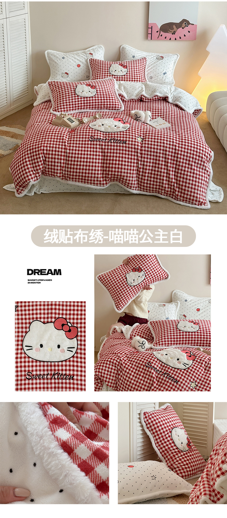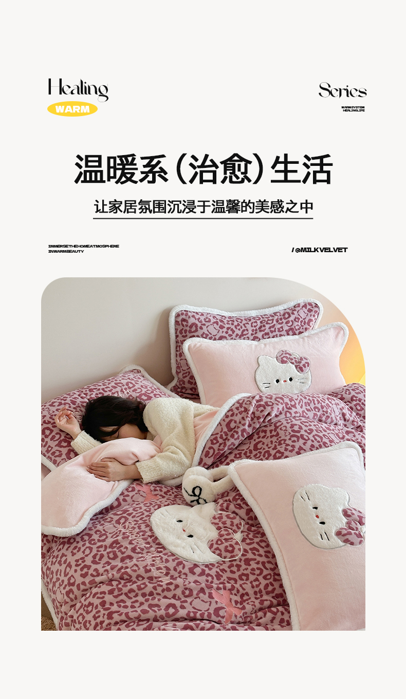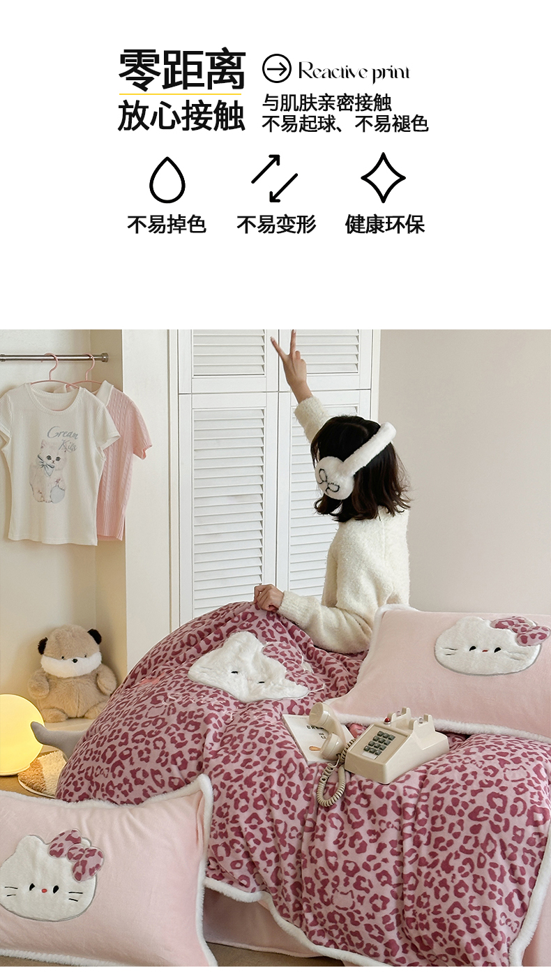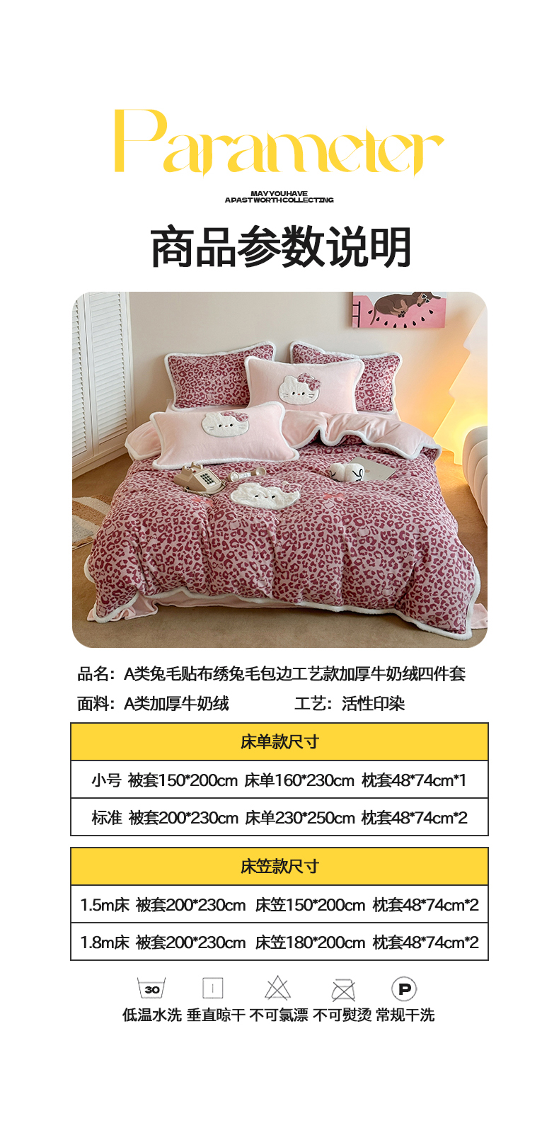 当前位置: 91家纺网 > 商品网购 > 床品套件 > 四件套 > 牛奶绒四件套 > 桃子家居 2026新款A类新年限定兔毛贴布绣猫咪可爱公主兔毛包边工艺款加厚牛奶绒四件套 绒贴布绣-豹纹喵喵粉