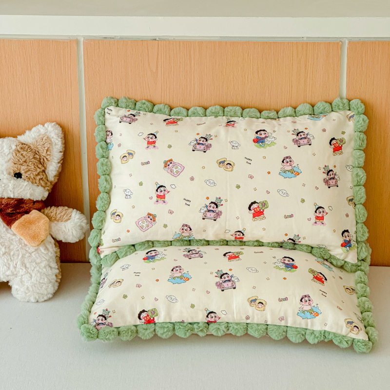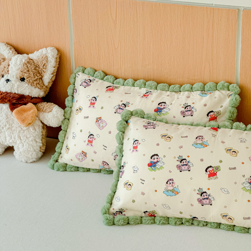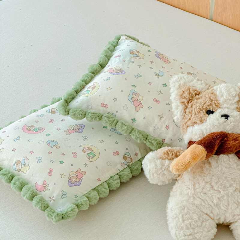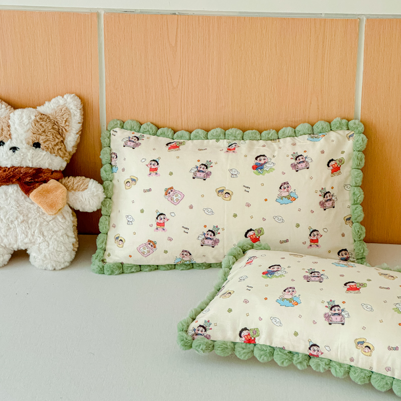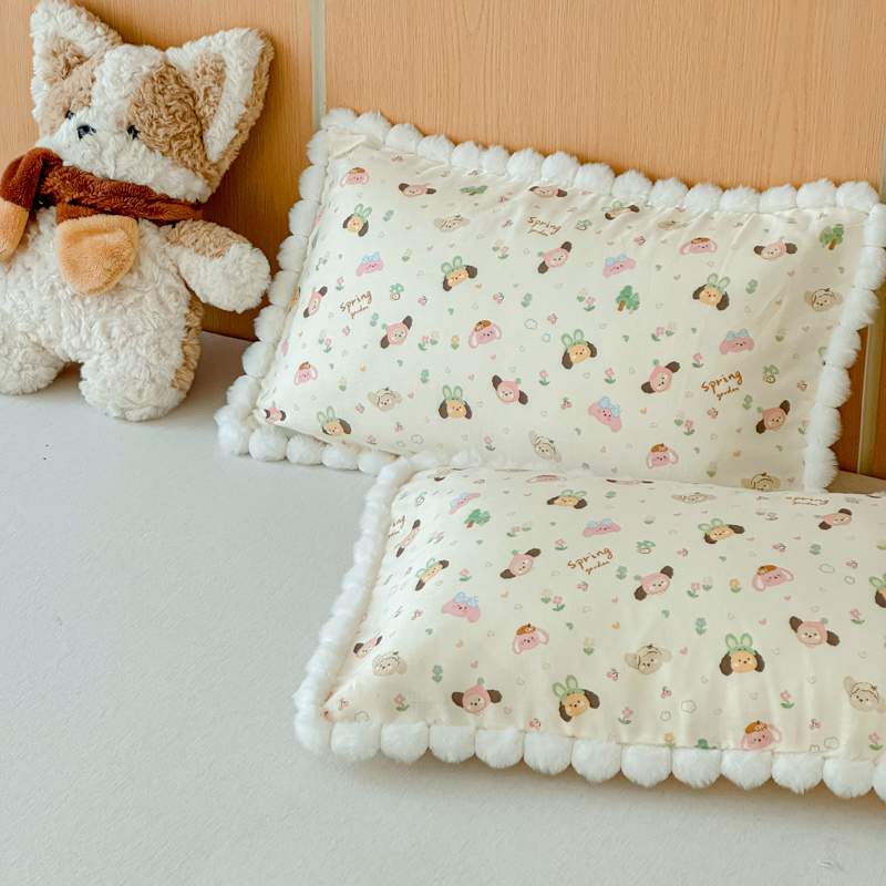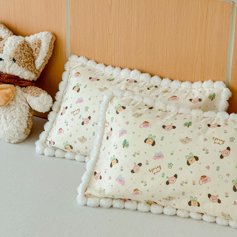 (总)金丝鸟家纺 2026新款全棉双层纱毛球款枕套多规格儿童枕套,叠拍组合图仅供展示,查理卧室,奇迹动物园 米,软萌游园会,吐司乐园