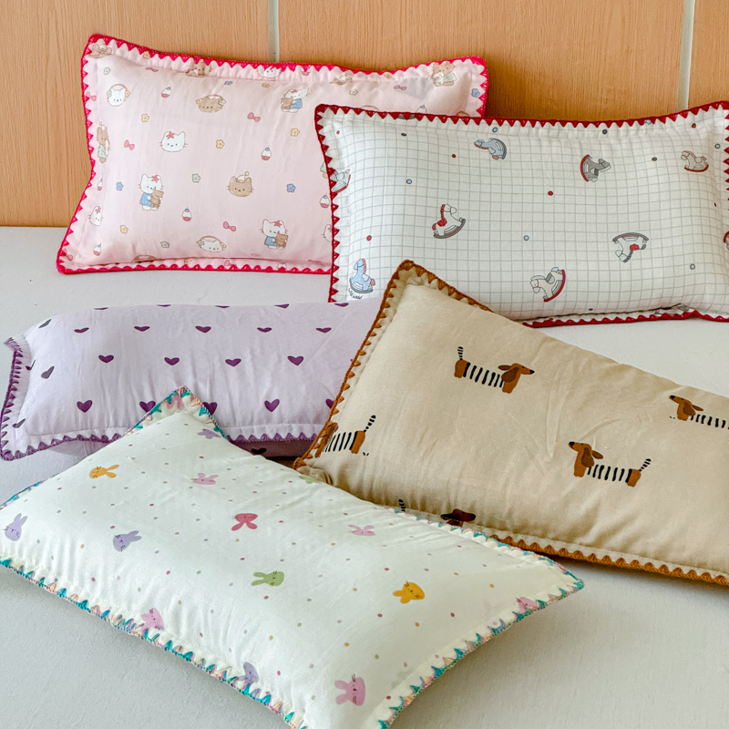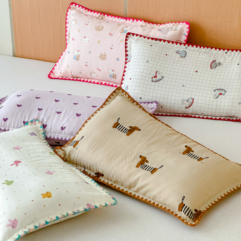 (总)金丝鸟家纺 2026新款全棉双层纱贝壳边款枕套多规格儿童枕套,彩色玻璃球,彩色小兔子,海底乐园 兰,拉条狗,帽子狗 绿,木马旧梦,奶味猫町 粉,暖系派对,七彩方格,千禧少女 粉,芋泥兔兔 兰,紫色心情