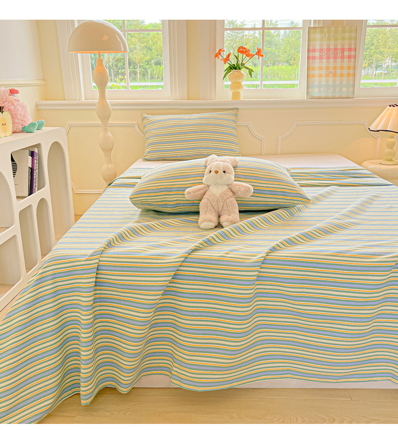• 91家纺网 家纺一手货源 找家纺 爱彼家纺 2026新款升级细纱老粗布床单款凉席席子单床单床单三件套 向往蓝条