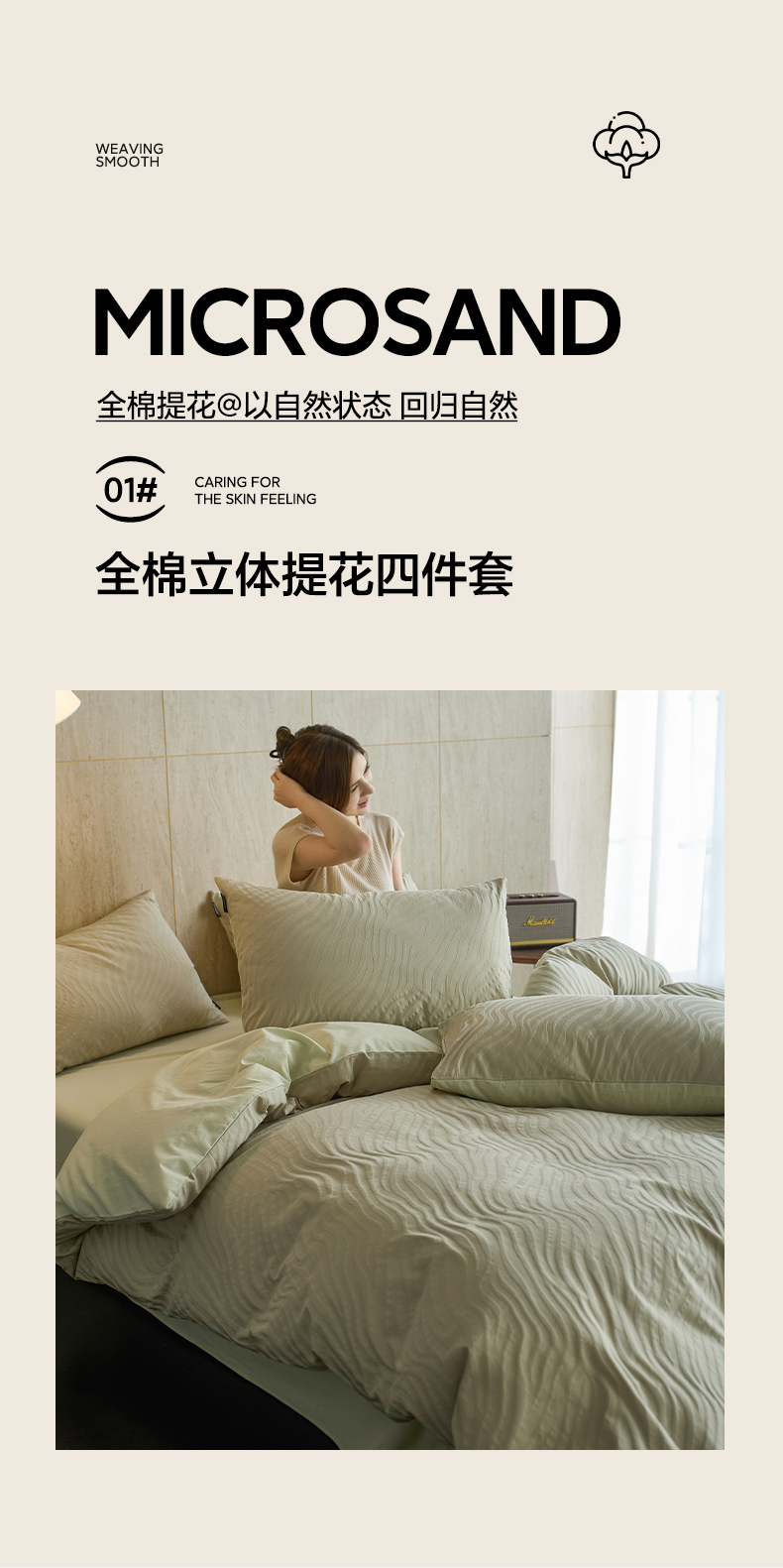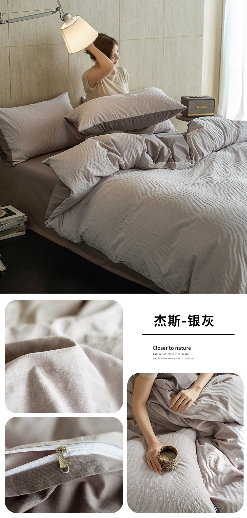 (总)小懒猪 2026新款亲肤舒适立体全棉纯棉提花四件套-系列三,布兰卡-金属灰,布兰卡-米杏,布兰卡-银灰,伊贝卡-米杏,伊贝卡-奶昔白,伊贝卡-银灰