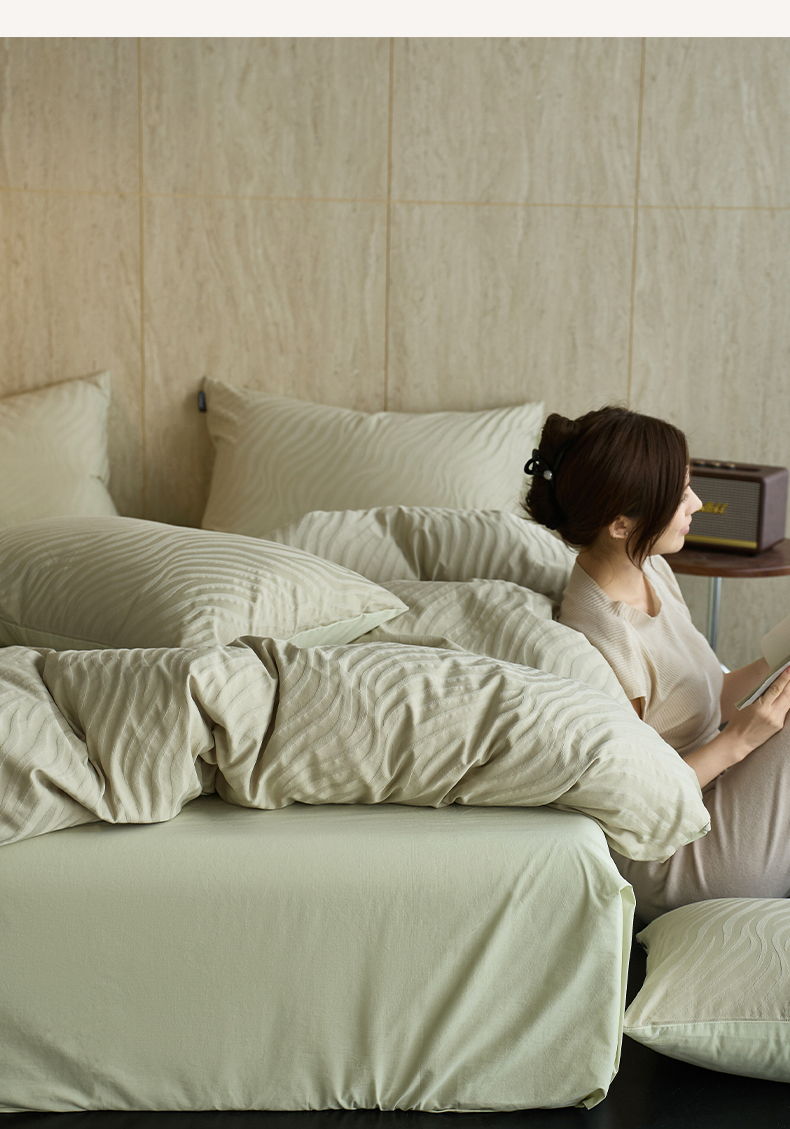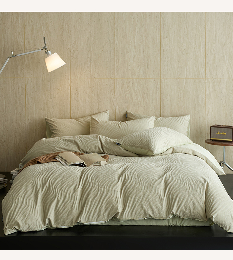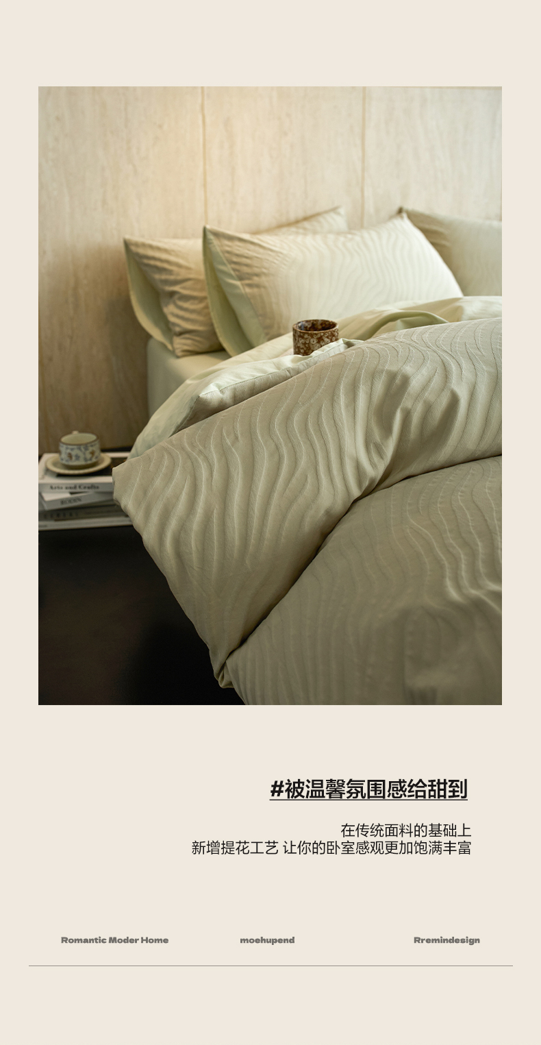 小懒猪 2026新款亲肤舒适立体全棉提花四件套 杰斯-奶绿