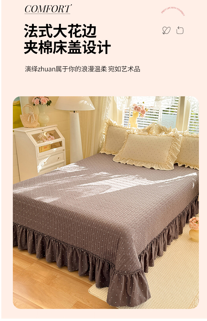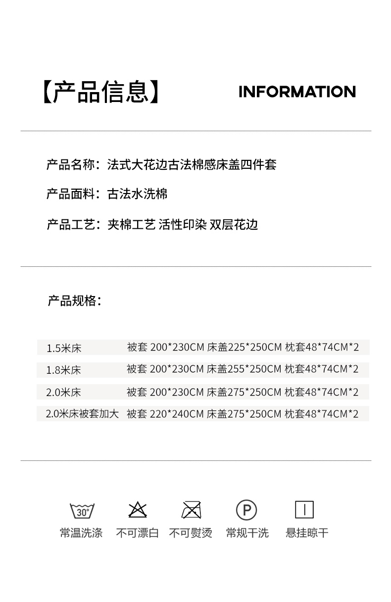 当前位置: 91家纺网 > 商品网购 > 床品套件 > 四件套 > 其它四件套 > 韩约家纺 2026新款法式大花边古法棉感床盖四件套 轻颜