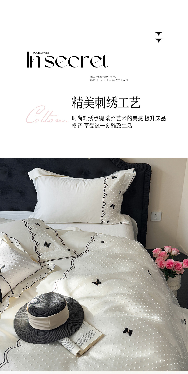 (总)东方合美(原:皇家传奇) 2026春夏新款长绒棉纯棉刺绣四件套-碟语森眠,碟语森眠-白,碟语森眠-粉,碟语森眠-蓝