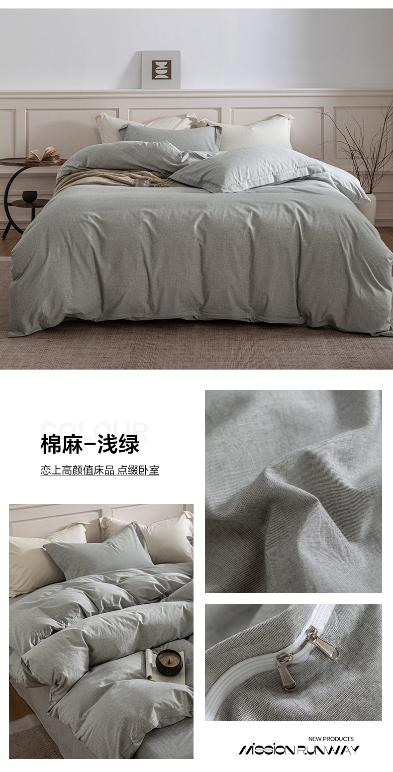 当前位置: 91家纺网 > 商品网购 > 床品套件 > 四件套 > 全棉普通四件套 > 锦罗绣 2026新款纯棉棉麻四件套 棉麻-浅绿