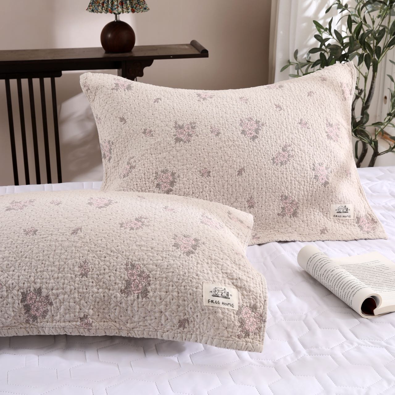 沐瑟家纺 2026新款安心棉纯棉纱布枕巾 咖色小花