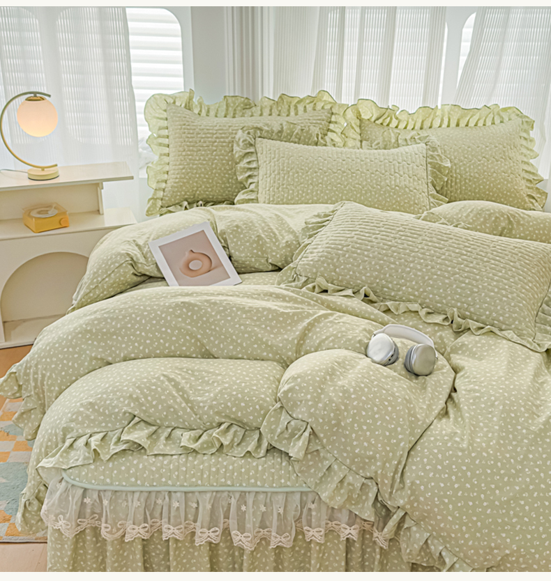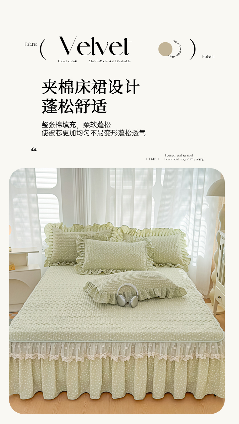 当前位置: 91家纺网 > 商品网购 > 床品套件 > 三件套 > 家之硕家纺 2026新款精仿棉夹棉床裙三件套 春芽