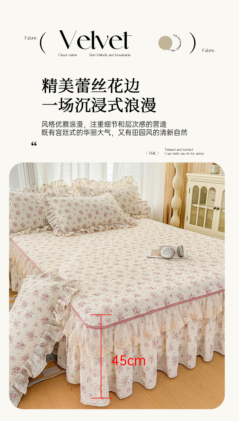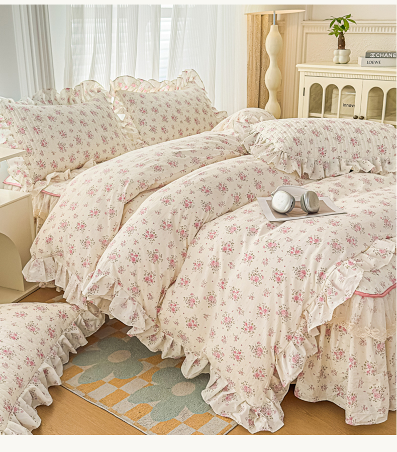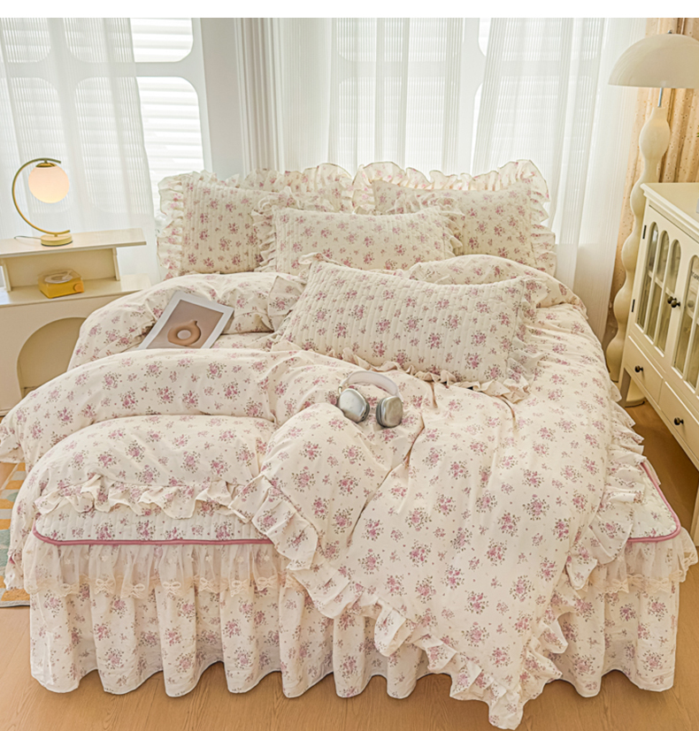 当前位置: 91家纺网 > 商品网购 > 床品套件 > 四件套 > 其它四件套 > 家之硕家纺 2026新款精仿棉夹棉床裙四件套 多丽粉