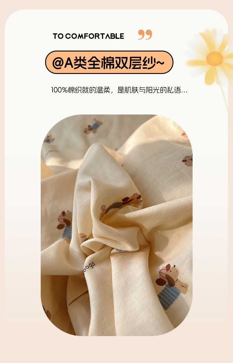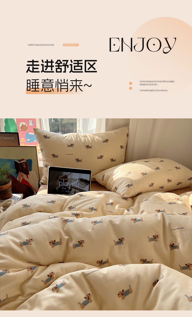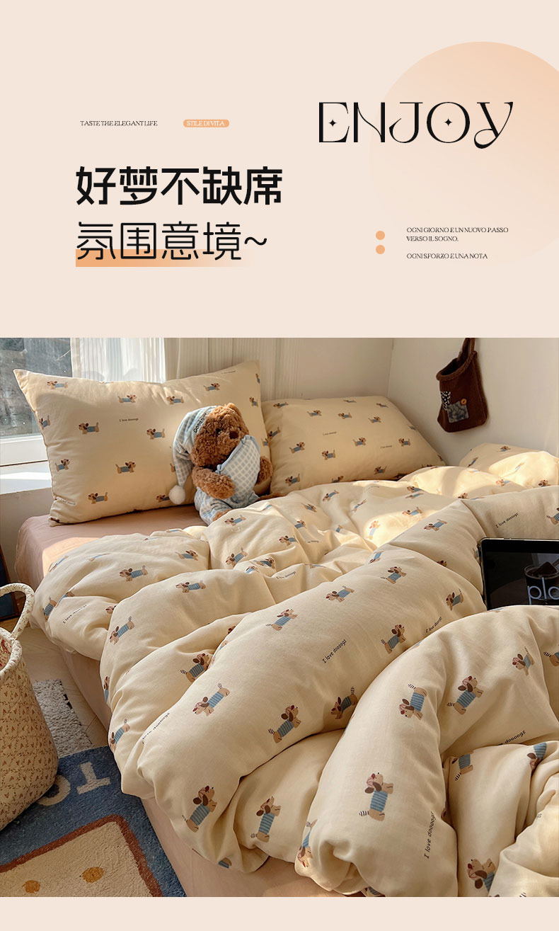 当前位置: 91家纺网 > 商品网购 > 床品套件 > 四件套 > 全棉普通四件套 > 六巷胡同 2026新款INS博主风卡通A类全棉双层纱四件套 双层纱-贝雷腊肠狗