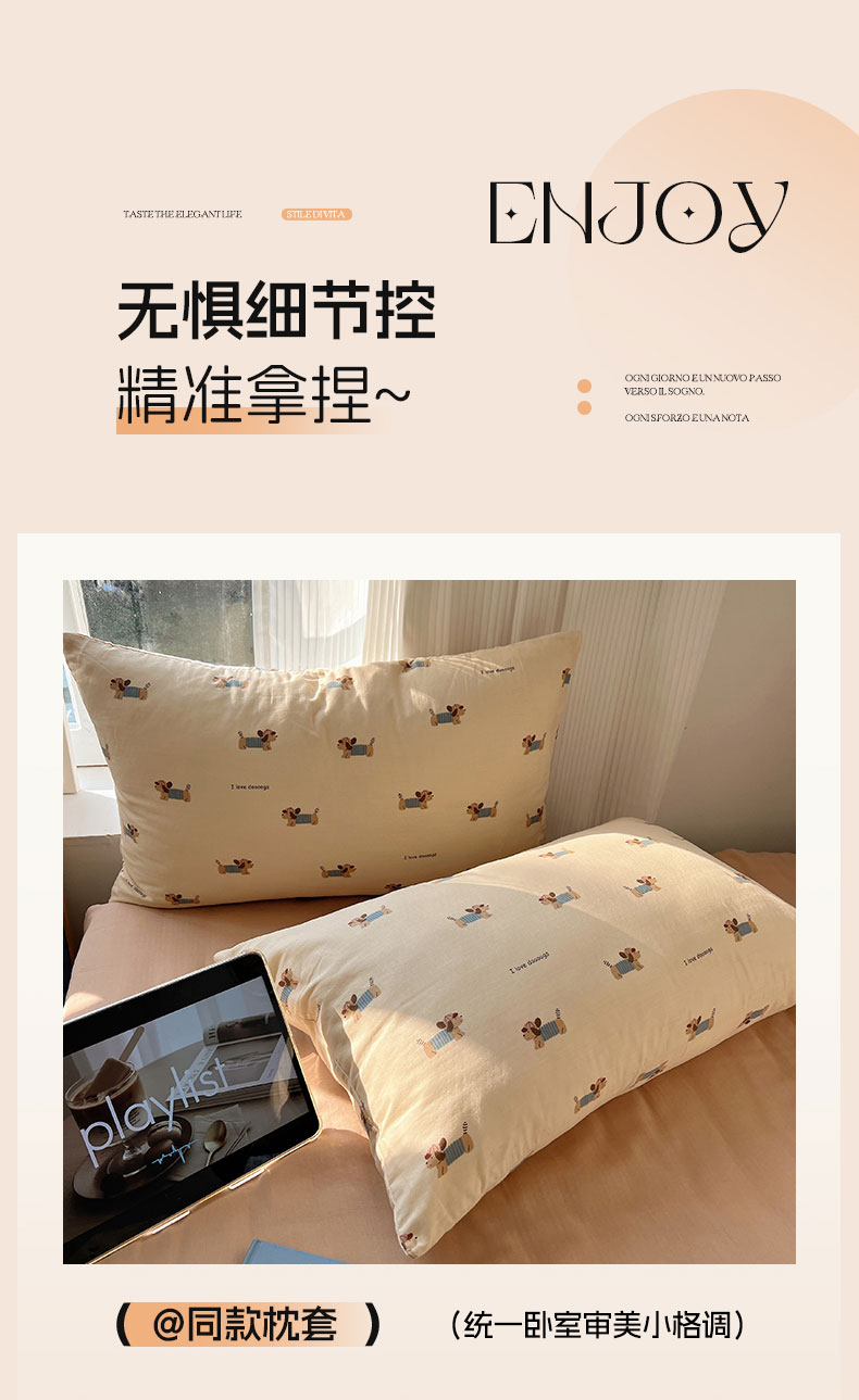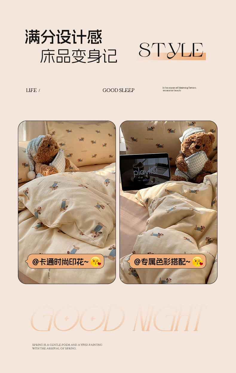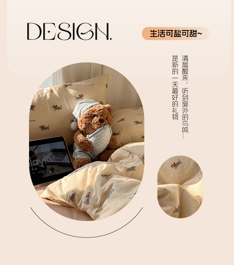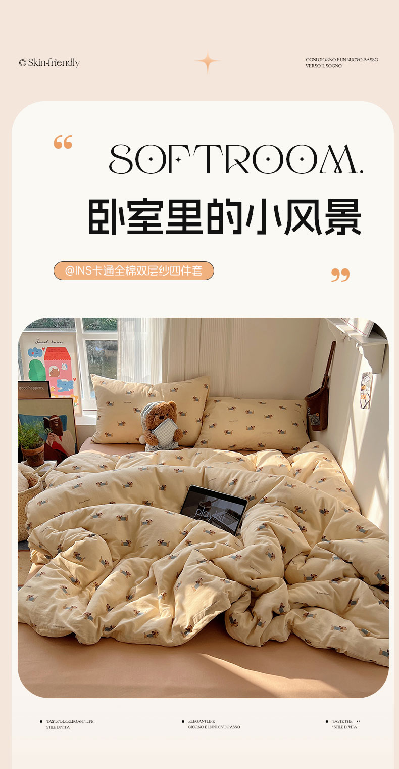 当前位置: 91家纺网 > 商品网购 > 床品套件 > 四件套 > 全棉普通四件套 > 六巷胡同 2026新款INS博主风卡通A类全棉双层纱四件套 双层纱-贝雷腊肠狗