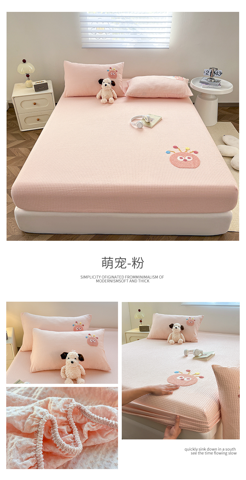 (总)居眠 2025新款防水夹棉床笠-清雅,清雅-粉色,清雅-灰色,清雅-卡其,清雅-绿色,清雅-米白,清雅-深蓝