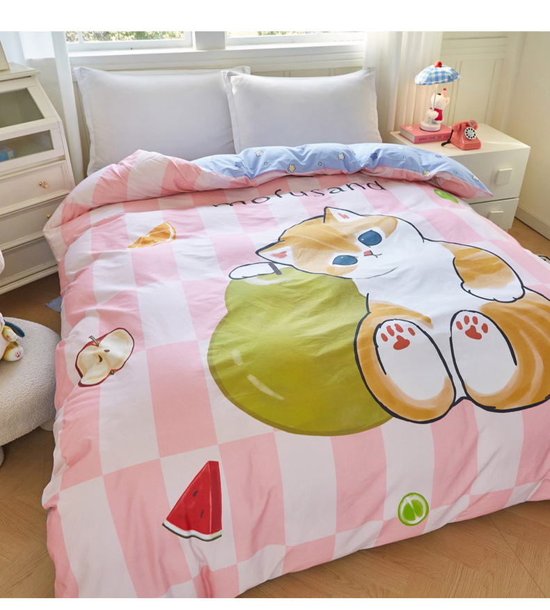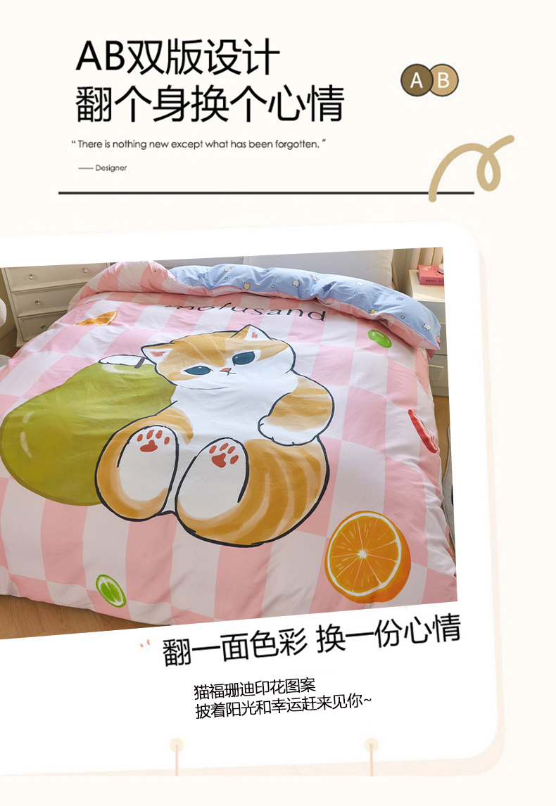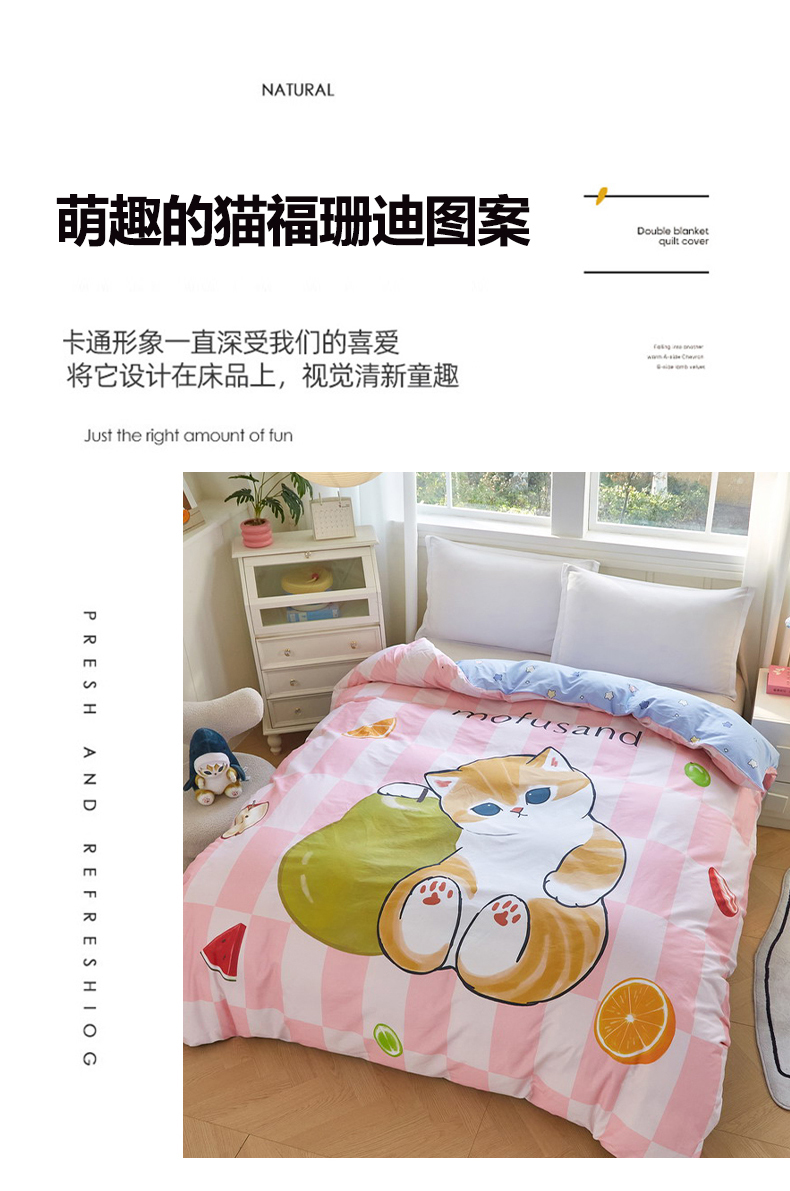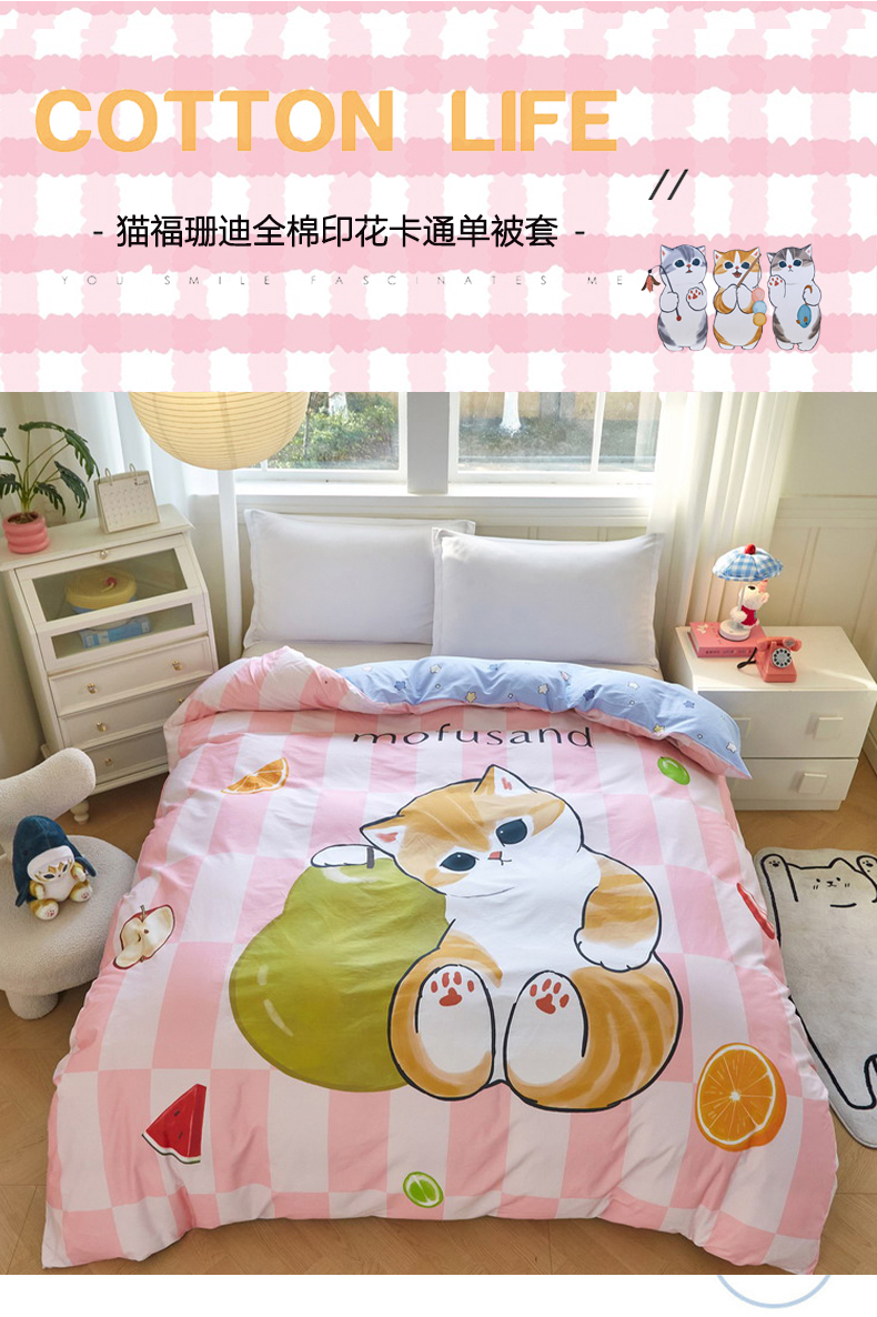 蘭菲家纺 2026新款全棉大版鲨鱼猫套件-猫福系列单被套 水果珊迪-猫福.系列