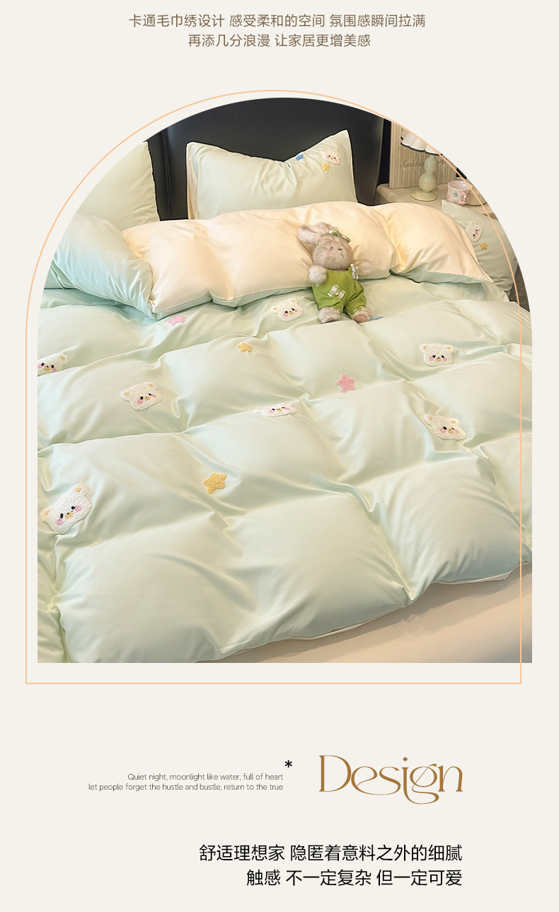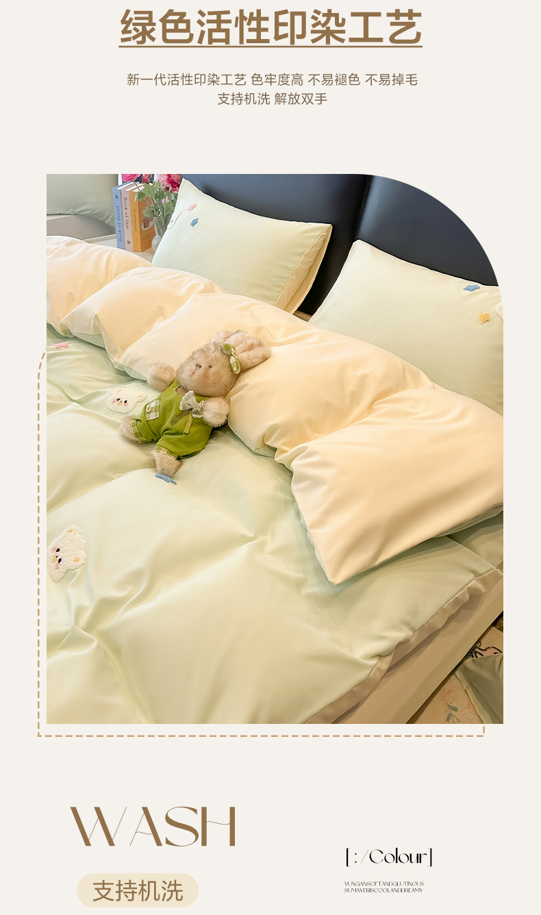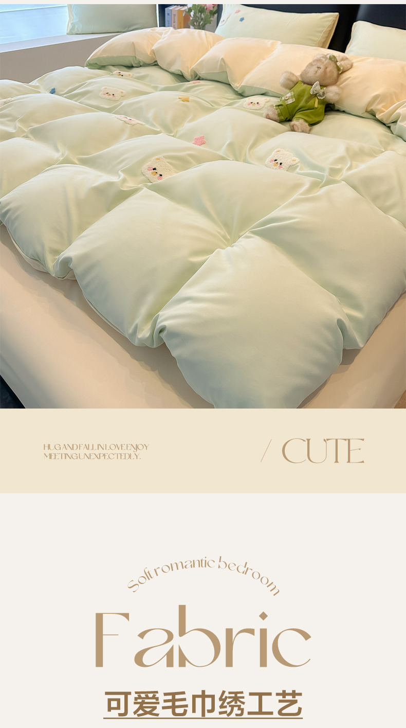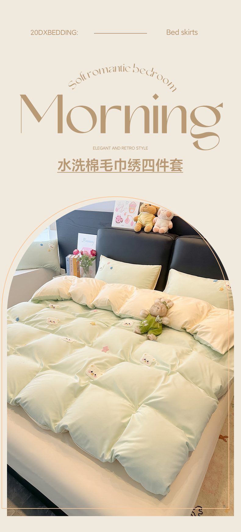 当前位置: 91家纺网 > 商品网购 > 床品套件 > 四件套 > 水洗棉四件套 > 韩巢家纺 2026新款水洗棉毛巾绣四件套 幸运熊-浅绿黄
