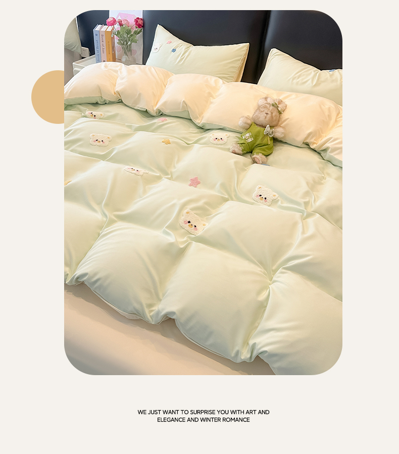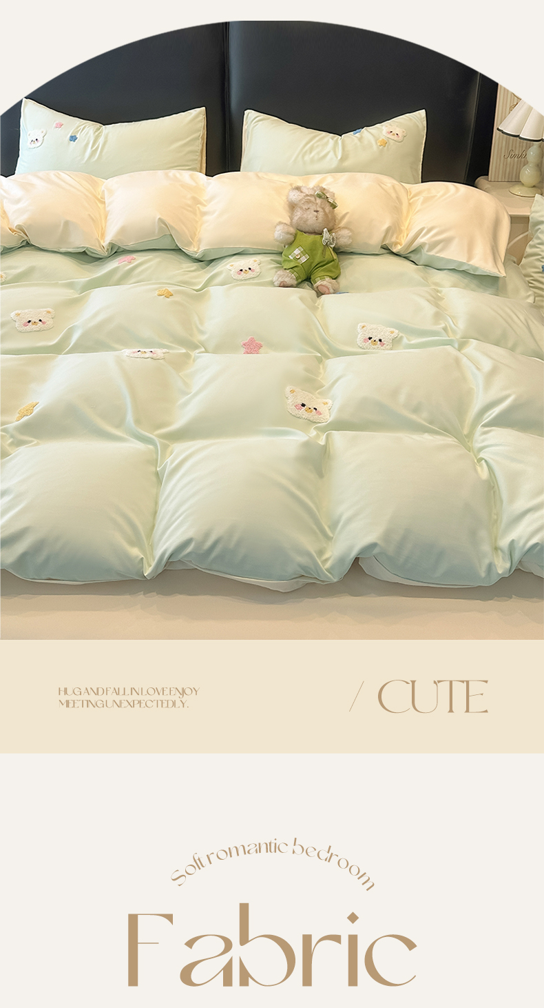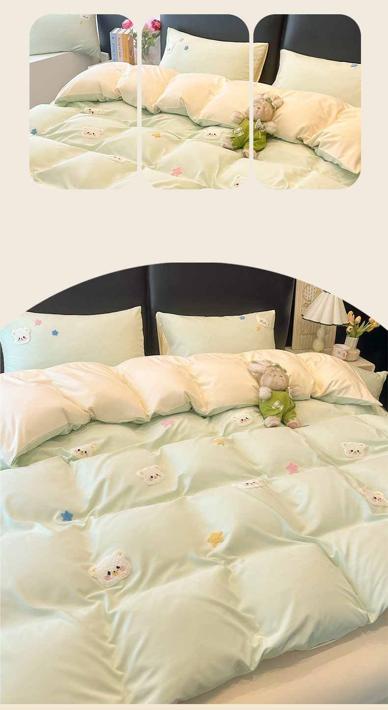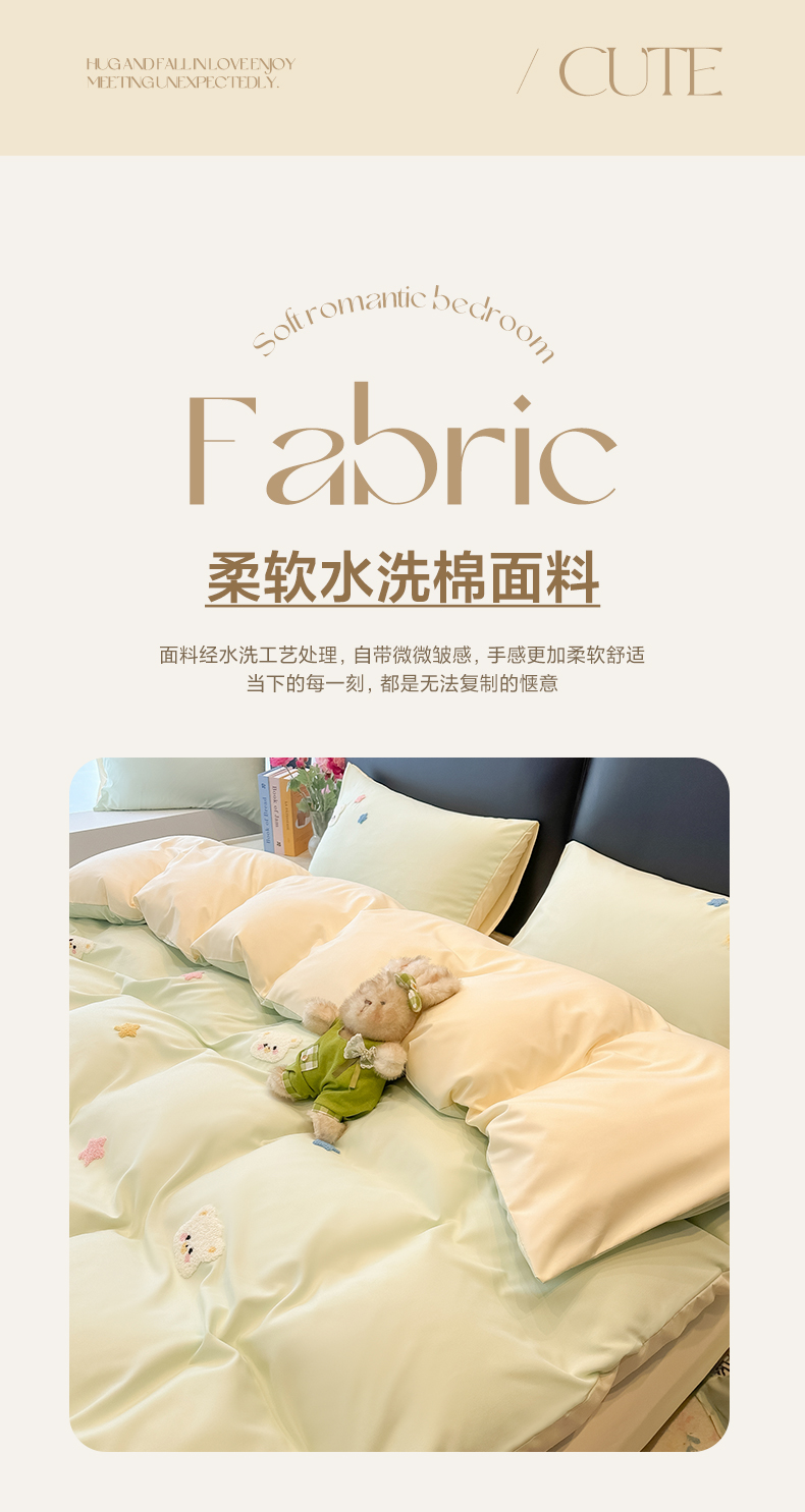 当前位置: 91家纺网 > 商品网购 > 床品套件 > 四件套 > 水洗棉四件套 > 韩巢家纺 2026新款水洗棉毛巾绣四件套 幸运熊-浅绿黄