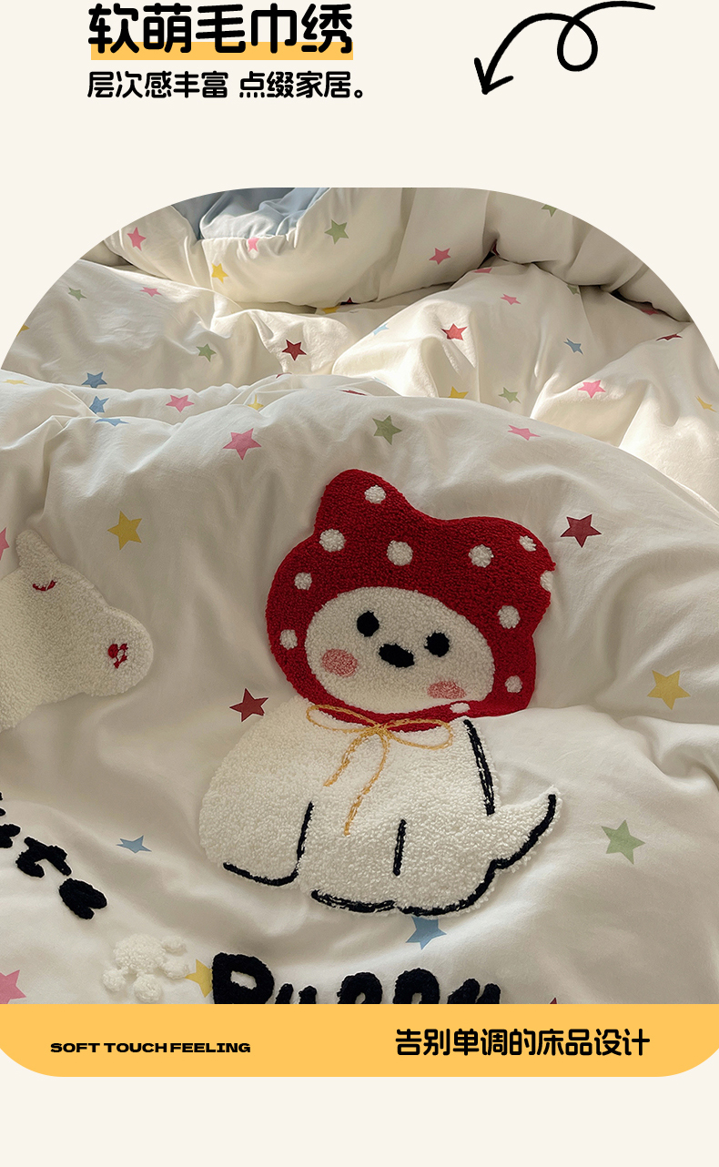 当前位置: 91家纺网 > 商品网购 > 床品套件 > 四件套 > 水洗棉四件套 > 沐芷 2026 【提供买家秀】水洗棉四件套毛巾绣A类仿棉床上用品床单被套三件套可爱小清新 毛巾绣-呆萌小红帽