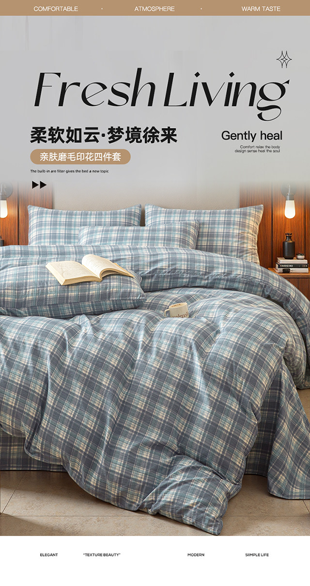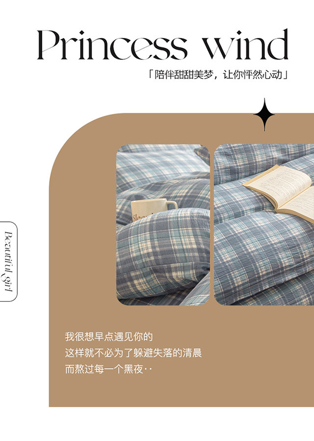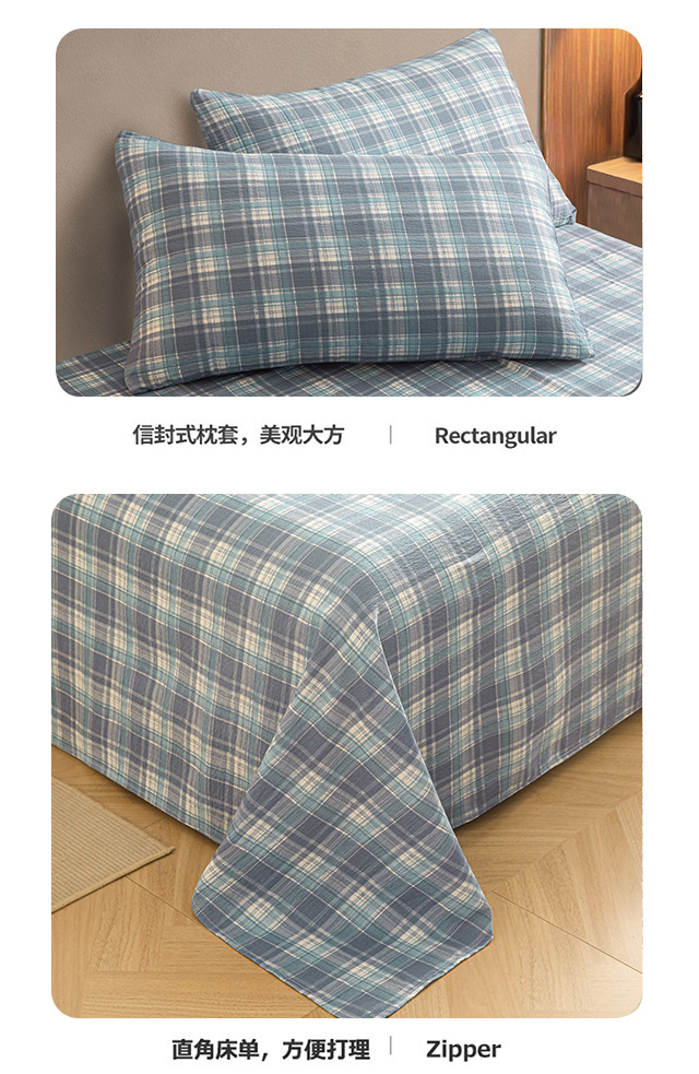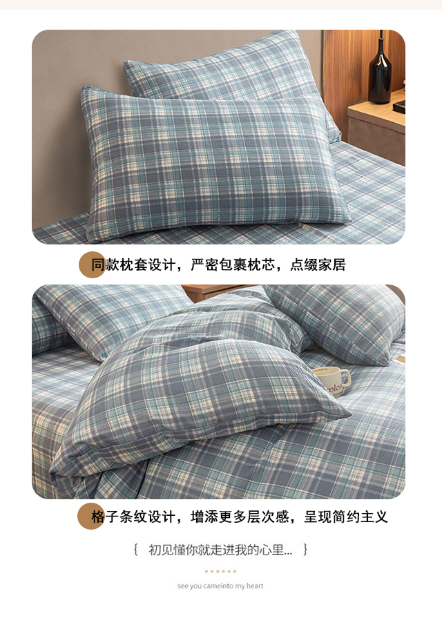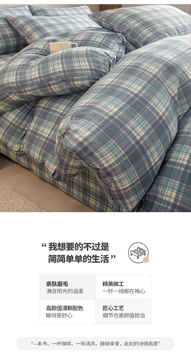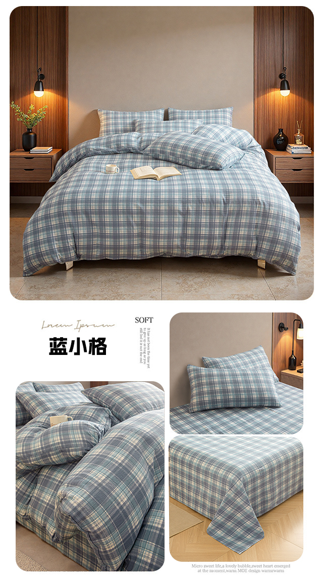 当前位置: 91家纺网 > 商品网购 > 床品套件 > 四件套 > 水洗棉四件套 > 友承家纺 2026最新款水洗棉无印风双层纱木棉四件套被套床单卧室床上用品学生宿舍被罩三件套床单枕套 蓝小格