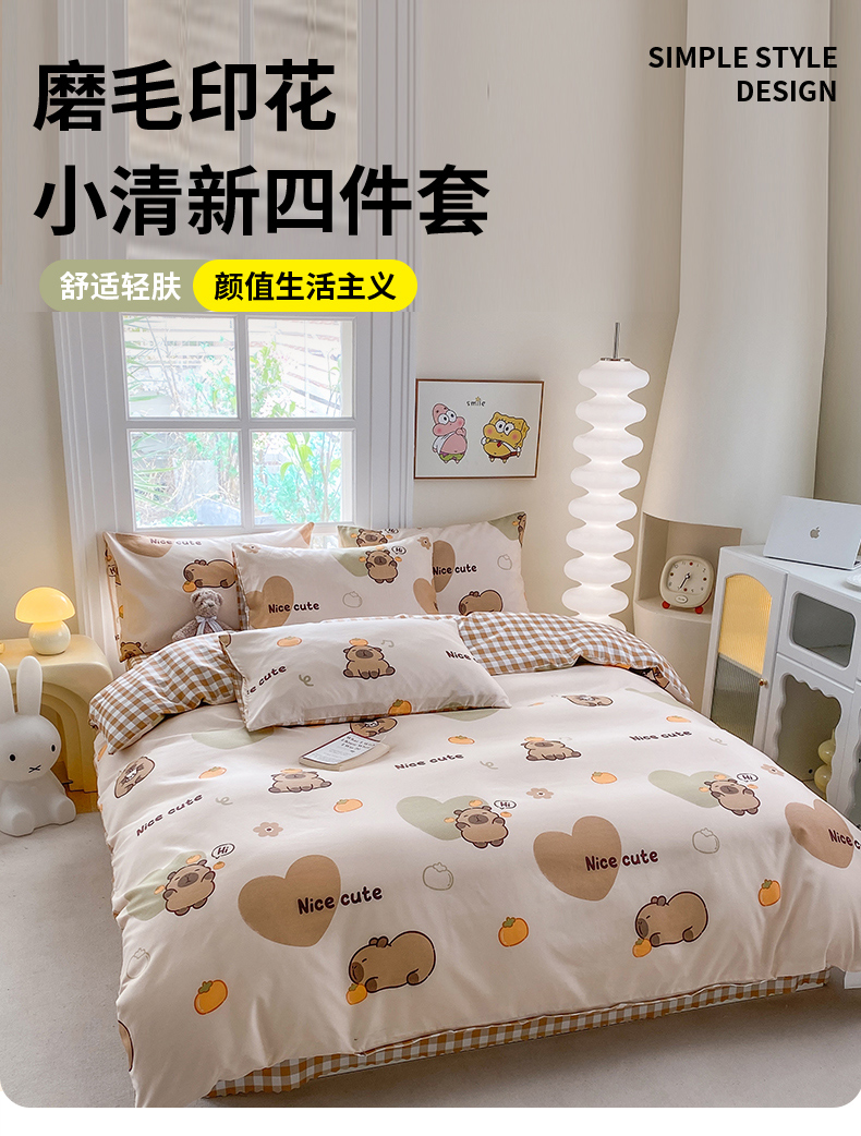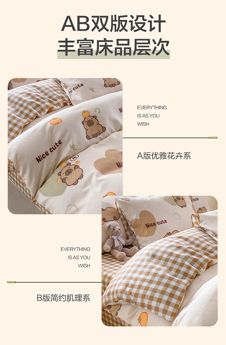 (总)友承家纺 2026新款床上用品磨毛水洗棉四件套被单被套学生宿舍单人三件套被罩单件四季通用,卡通乐园,期待,海豚湾,可爱猫,富士山下,初遇,爱心小熊,baby熊,欢乐狗米,吉祥鹿兰,鲸鱼,兰大格,恋爱味道,萌萌,慕尼黑,深海情缘,淘气猫兰,淘气猫绿,网红雏菊兰,网红雏菊绿,小可爱,小恐龙,星空之约,幸运花,云朵