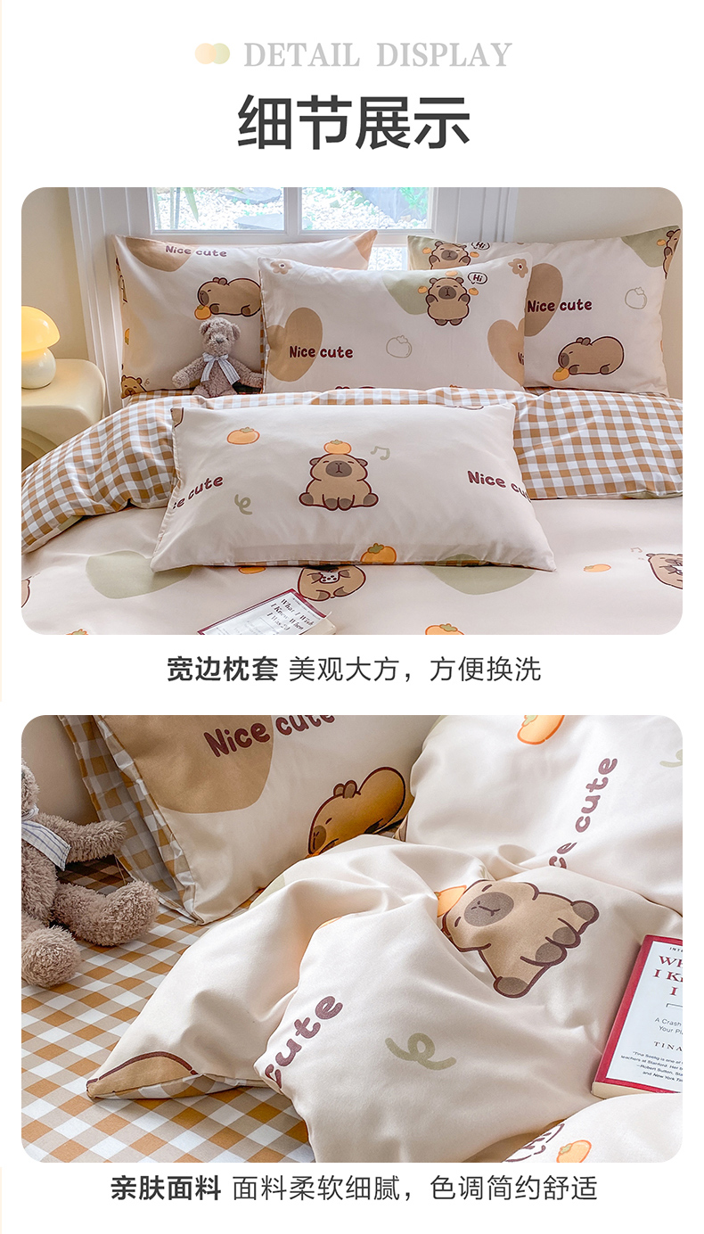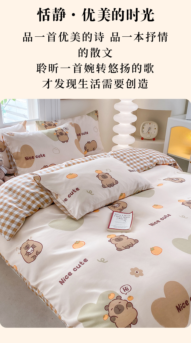 商品名称:友承家纺 2026年新款床上用品学生宿舍套件亲肤磨毛单件被套150x180x220cm芦荟棉被罩200x230 萌萌