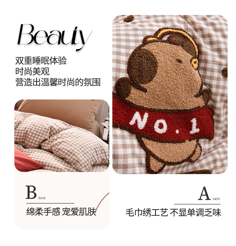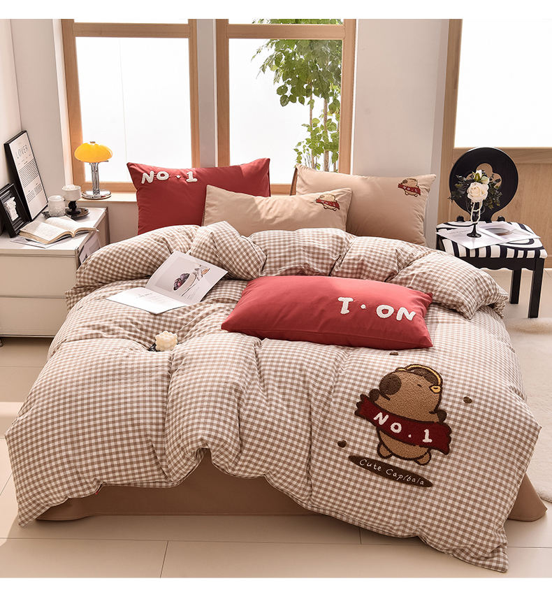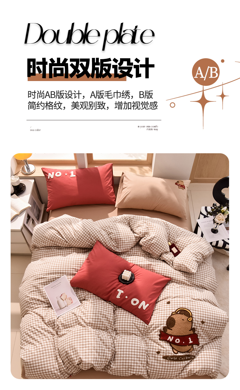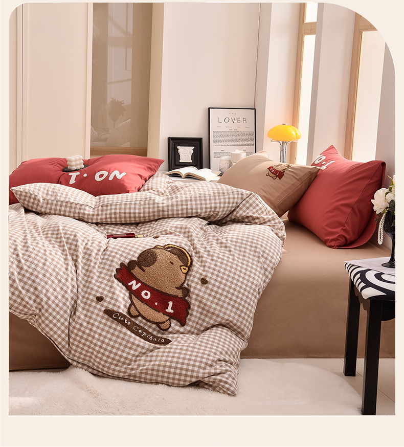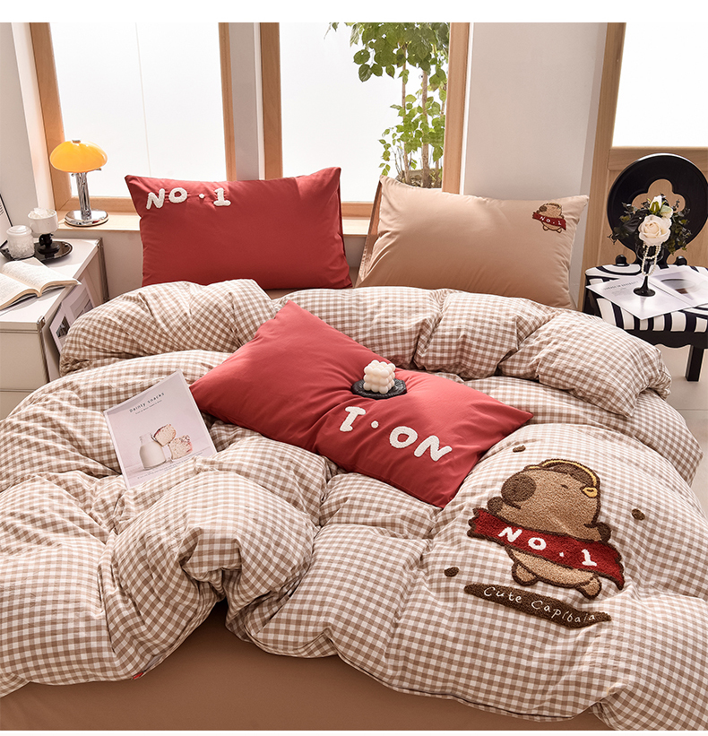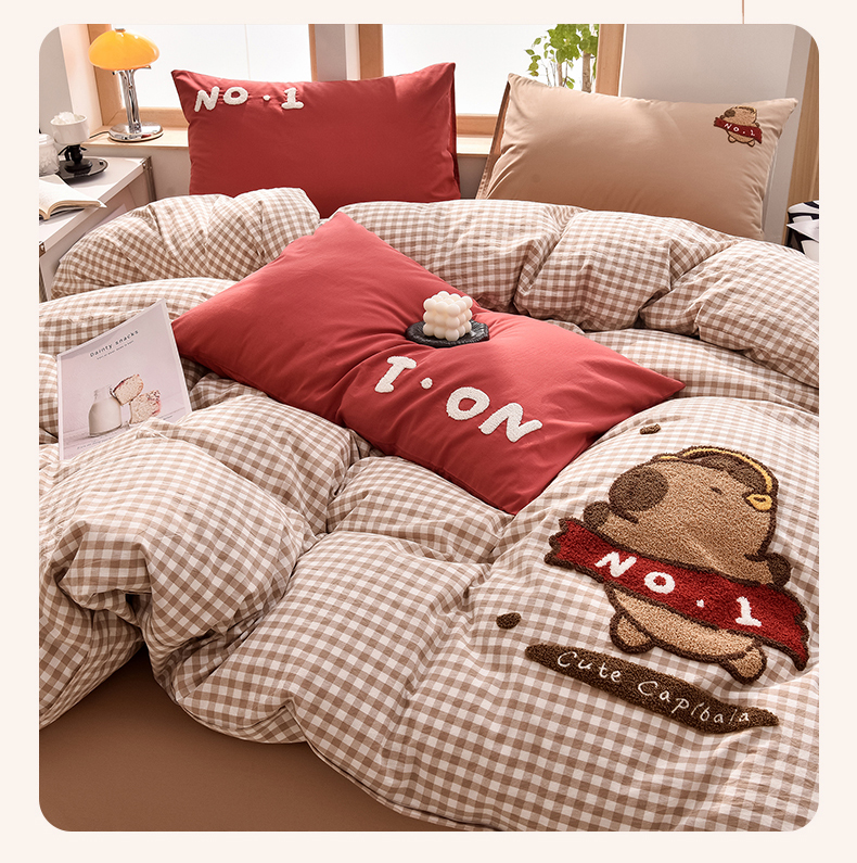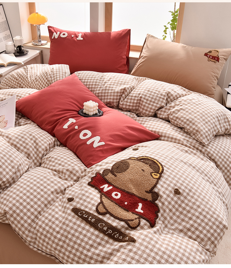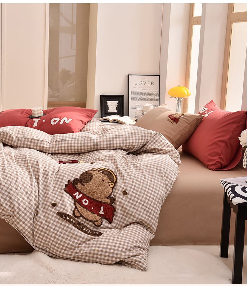 当前位置: 91家纺网 > 商品网购 > 床品套件 > 四件套 > 全棉普通四件套 > 炫拼家纺 2026新款多巴胺系列A类全棉40支水洗棉卡通毛巾绣四件套 多巴胺-No1