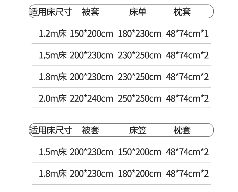 【床笠款】1.5四件套-被套200x230 | ¥140.00 |