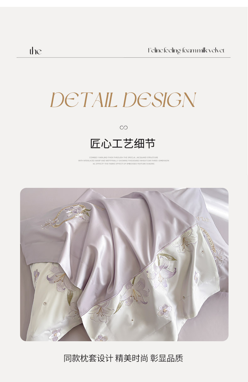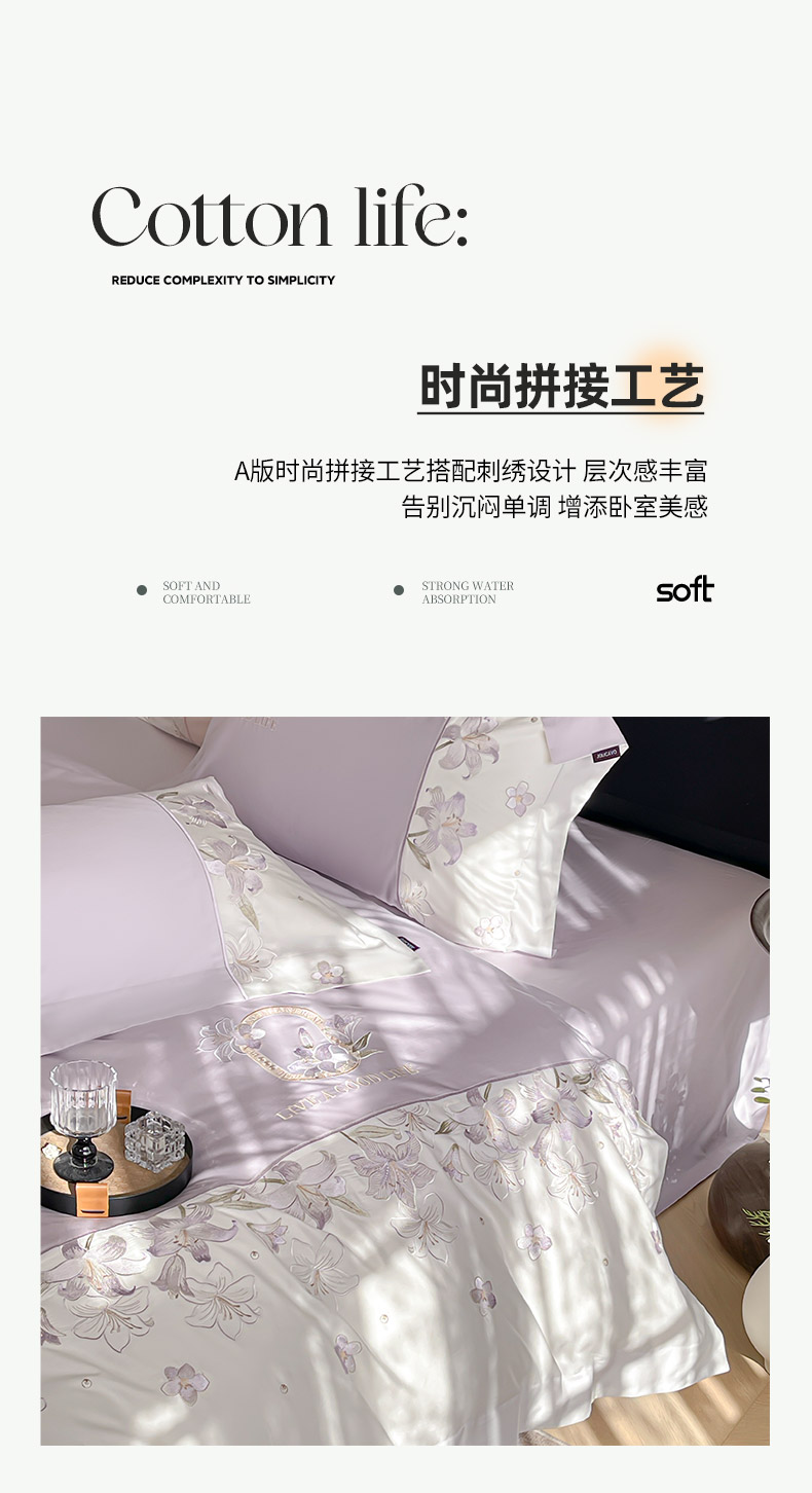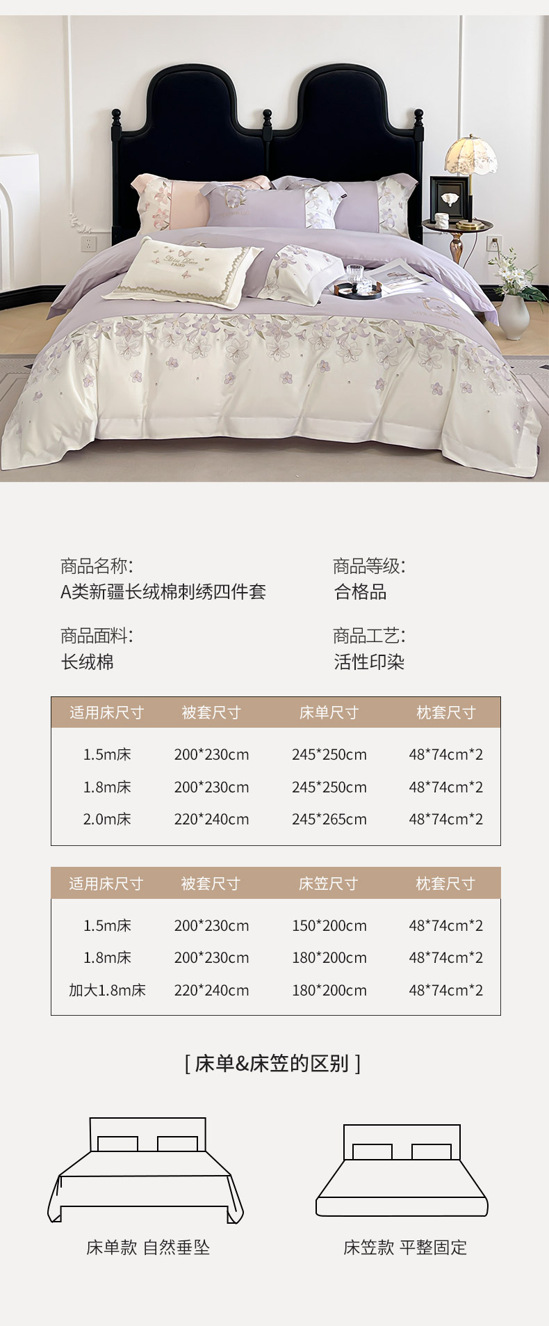 商品名称: 2026新款特供款A类长绒棉纯棉四件套100全棉少女心刺绣被套床单床笠床上用品 花若梦-幽紫