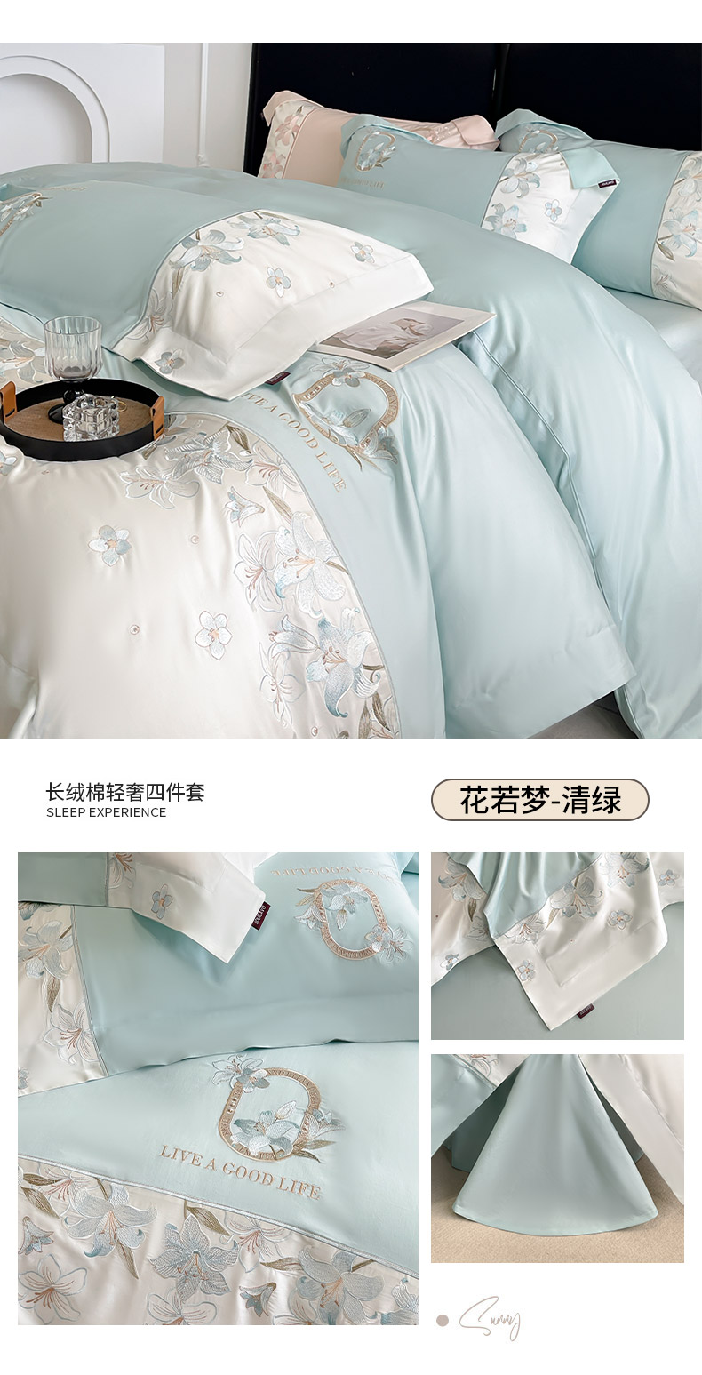 (总) 2025春夏长绒棉四件套纯棉全棉轻奢风床单被套重工刺绣床上用品,芊羽梦-白粉,芊羽梦-茶绿,芊羽梦-黛紫,芊羽梦-慕蓝,芊羽梦-颜粉